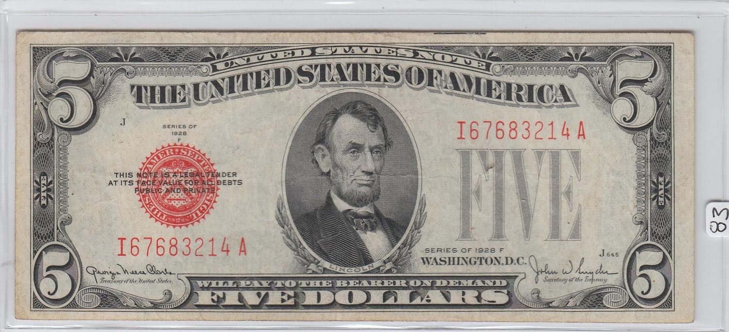 $5 1928 F SERIES HARDER SERIES RED SEAL