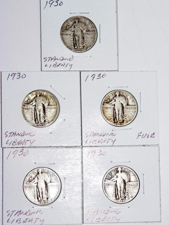 (5) 1930 Standing Liberty Quarter's - Graded Fine - Sold Times the Money (5) 1930 Fine Quarter's Standing Liberty