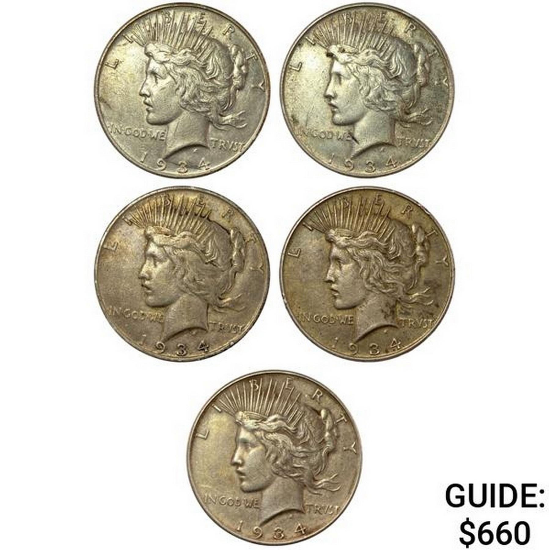 [5 Coins] 1934D Silver Peace Dollar