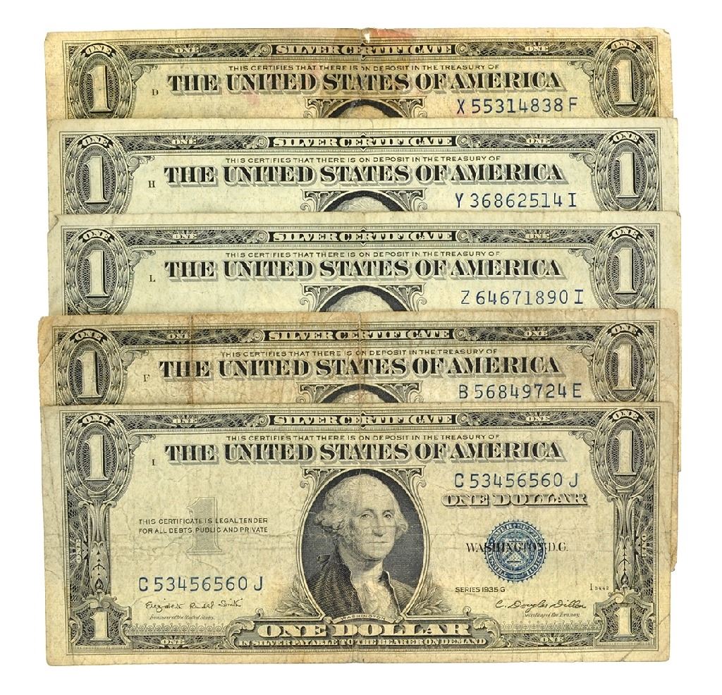 (5) 1935 $1 U.S. Silver Certificates