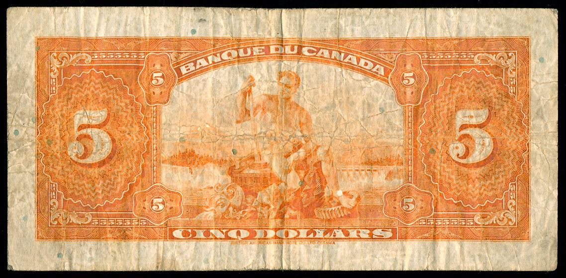$5, 1935 Prince of Wales issue, French Text "Banque du Canada", BC-6, VG+++