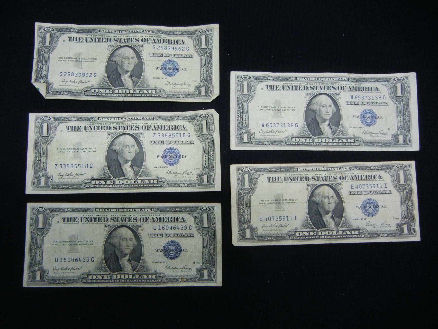 (5) 1935 Silver Certificates