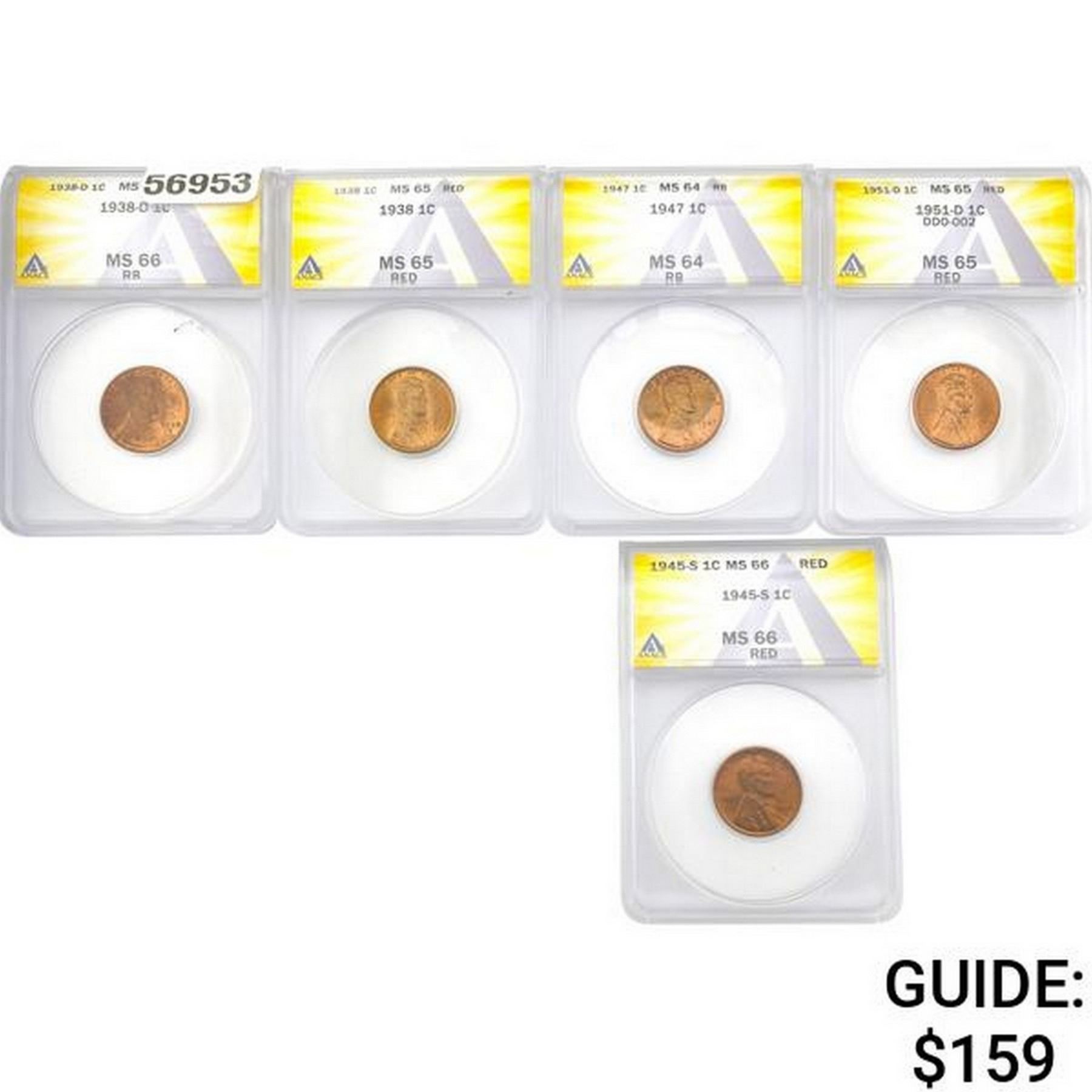 [5] 1938-1951 Wheat Cent ANACS MS64-67 RED/RB
