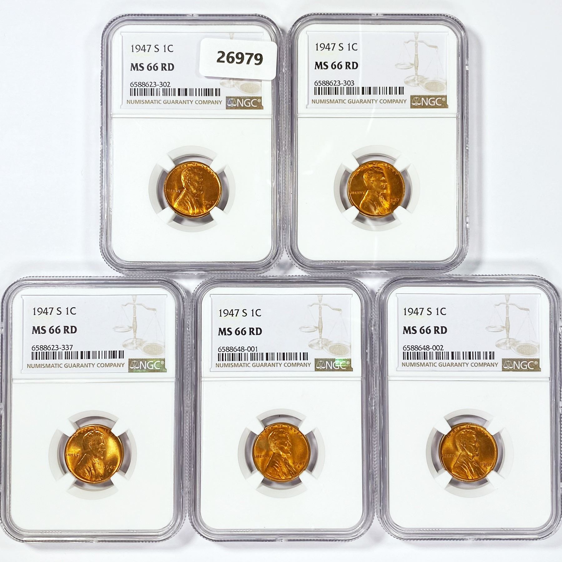 (5) 1947-S Lincoln Wheat Cents NGC MS66 RD