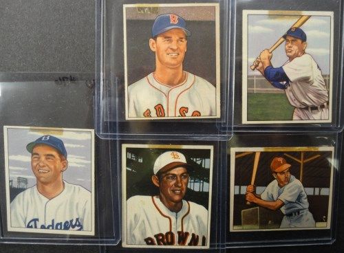 Includes: #76, #142, #204, #211, #246. Breaking a 1950 Bowman Baseball Partial Set, including Big Stars, Rookies, & Semi-Stars. These Cards have Beautiful Color & Gloss, Clean Surface with EM-EX+ Corners with some looking NM! However, each card has a small tape mark on the top of the card. (only on the tops, backs are clear.) This is so unfortunate for such a Nice 1950 Bowman Partial Set. Book $200.00 Est. Value $40.00 - $60.00.
