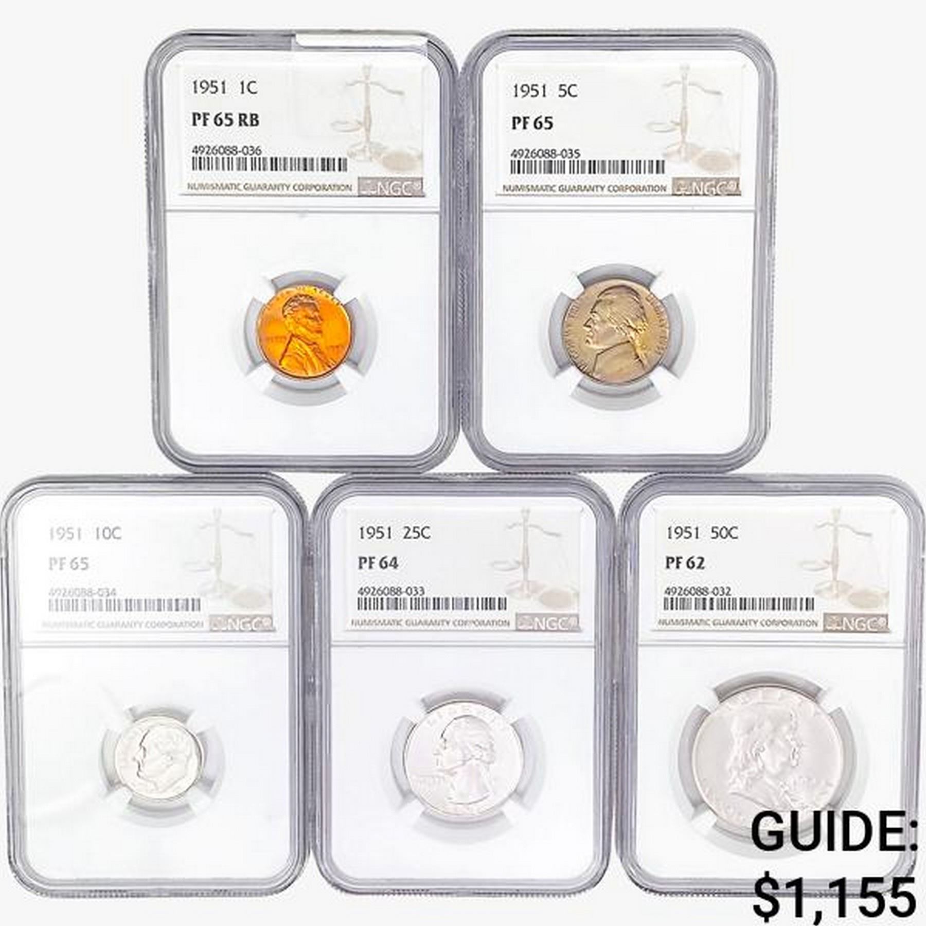[5] 1951 Varied Coinage Set NGC PF