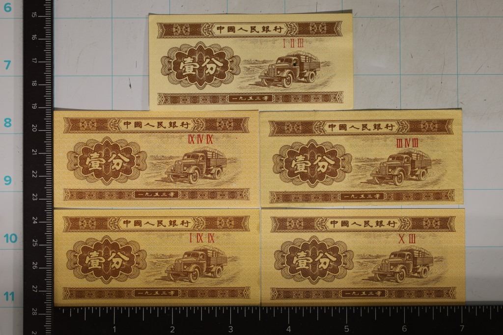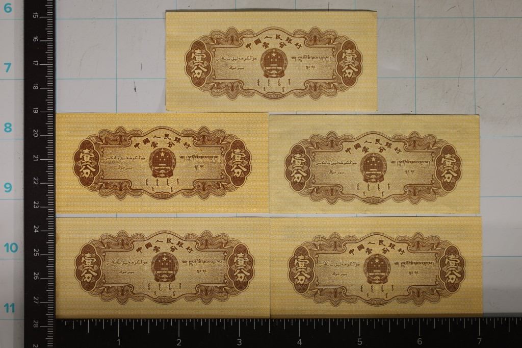 5-1953 CHINA 1 FEN, 4 ARE CRISP UNC BILLS
