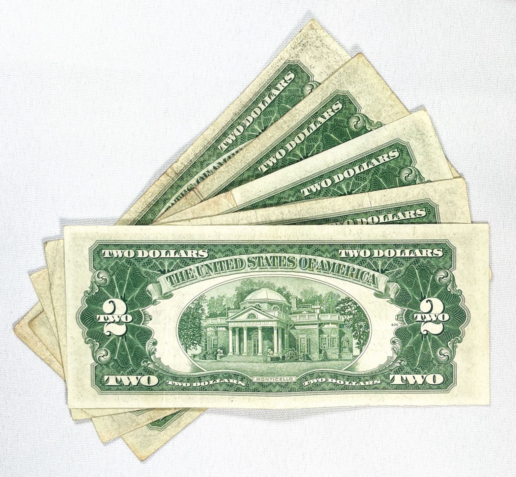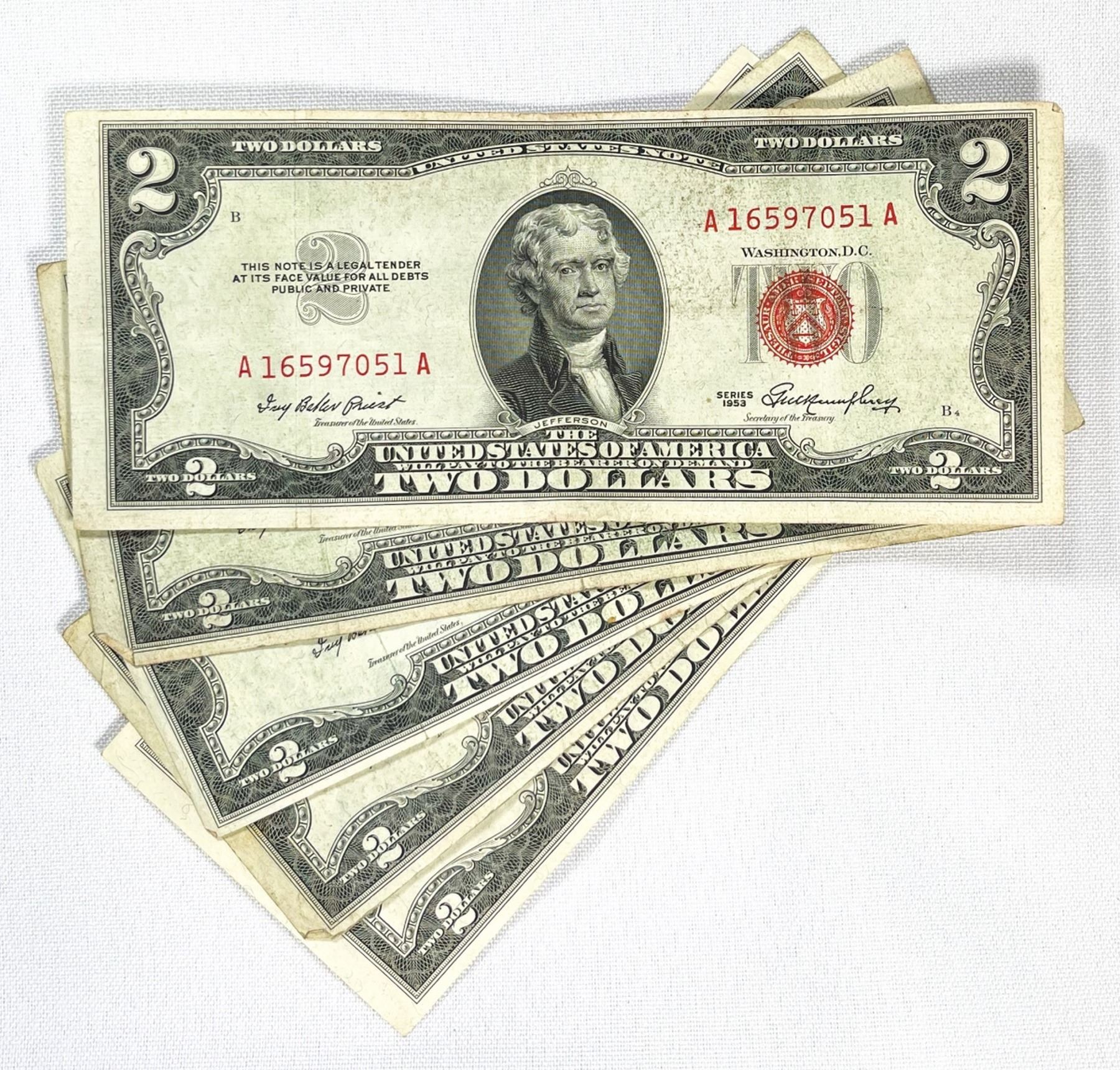 (5) 1953 US Red Seal Two Dollar Bills UNC