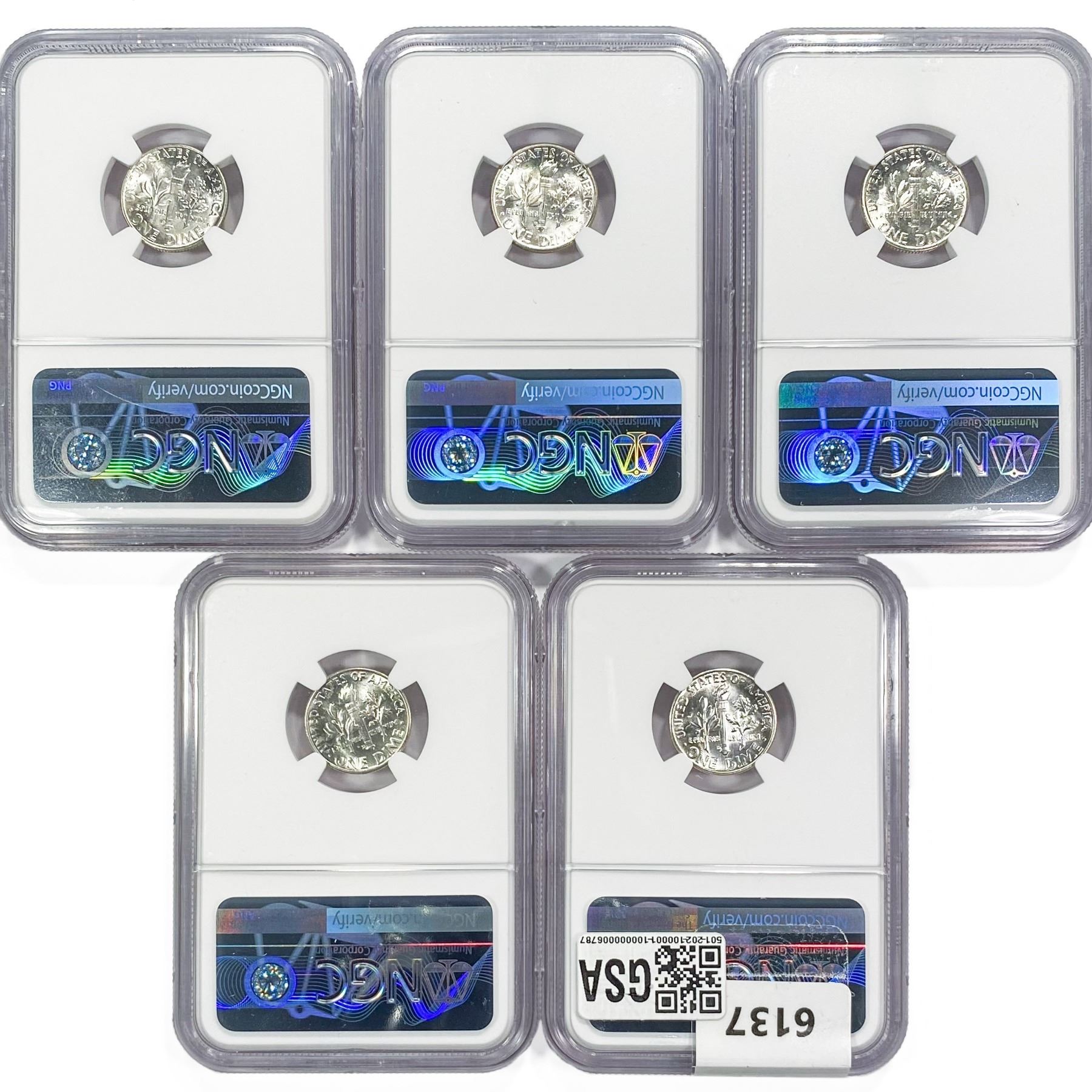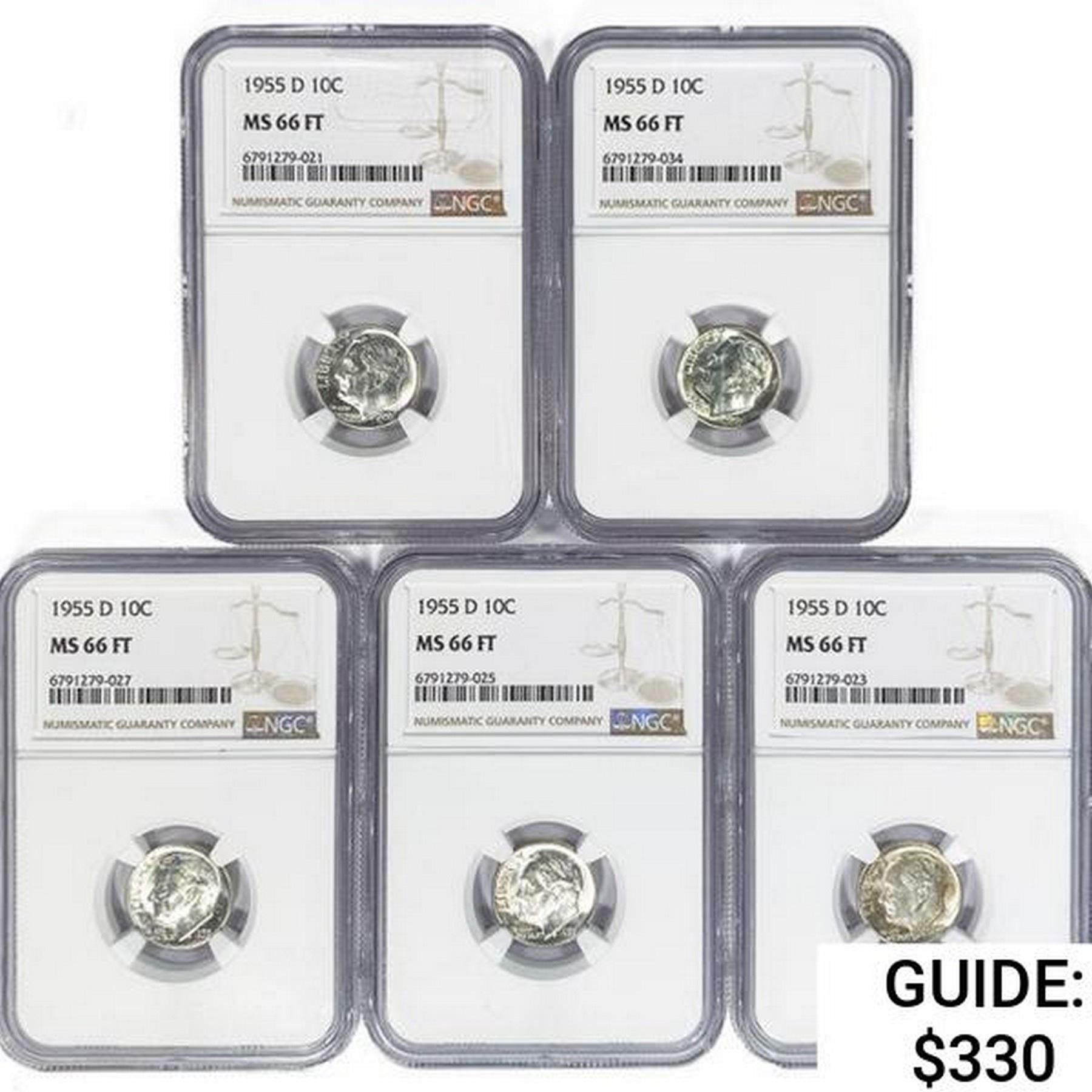 [5] 1955-D Roosevelt Silver Dimes NGC MS66 FT