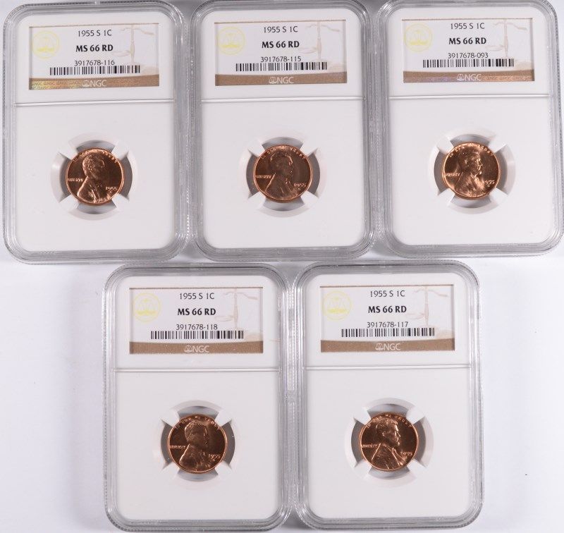 ( 5 ) 1955-S LINCOLN CENTS, NGC MS-66 RED GEMS!!~
