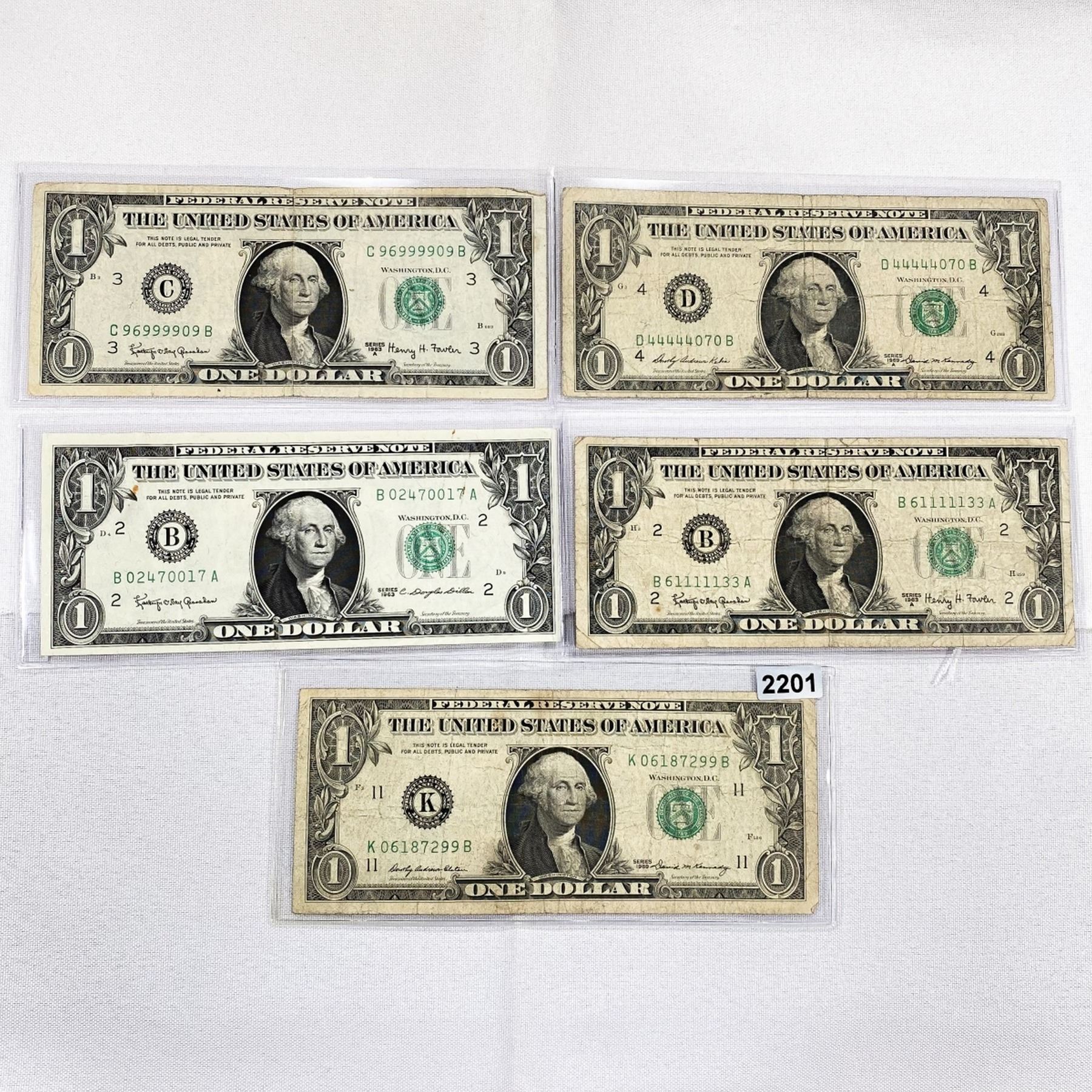 (5) 1960's $1 Fed. Reserve Notes CIRC