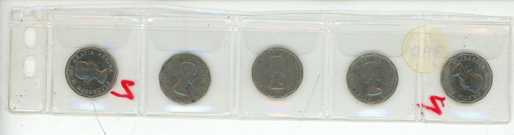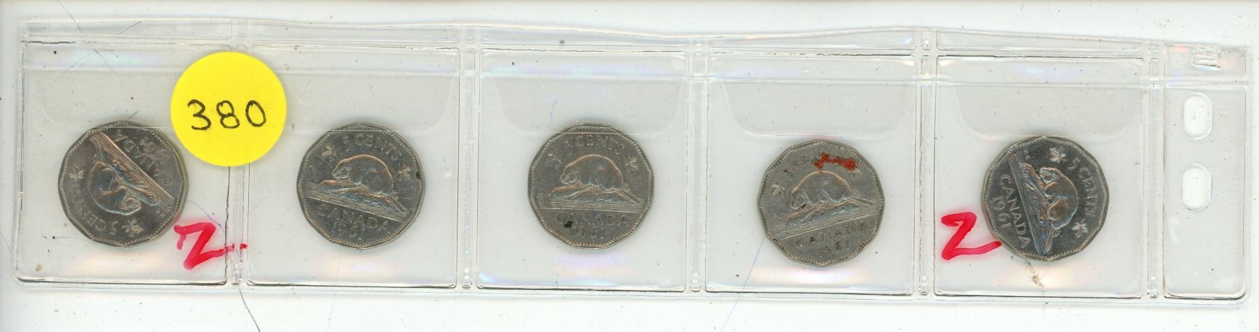(5) 1961 Canadian 5 Cent Coins.