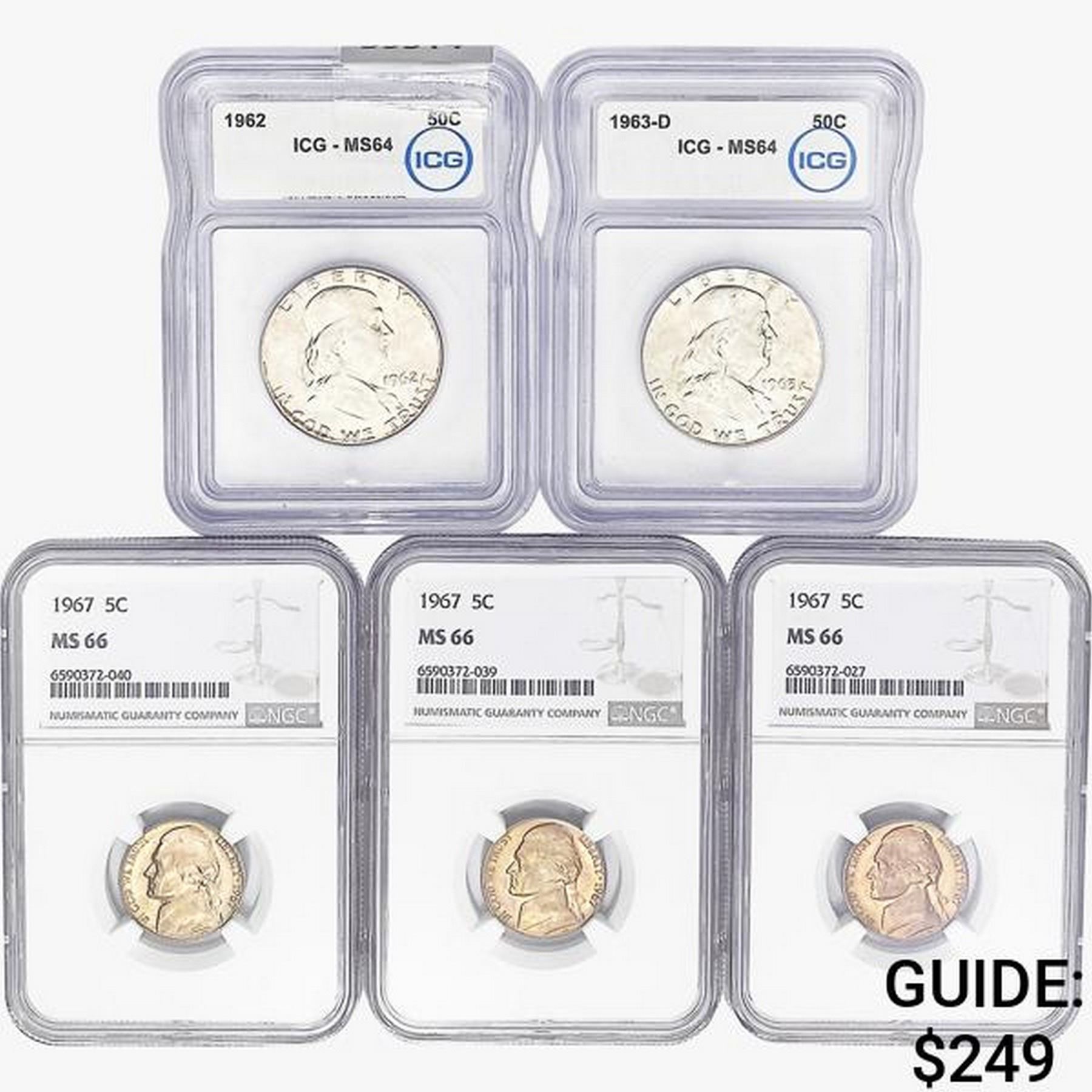 [5] 1962-1967 3 5C, 2 50C ICG/NGC MS64/66