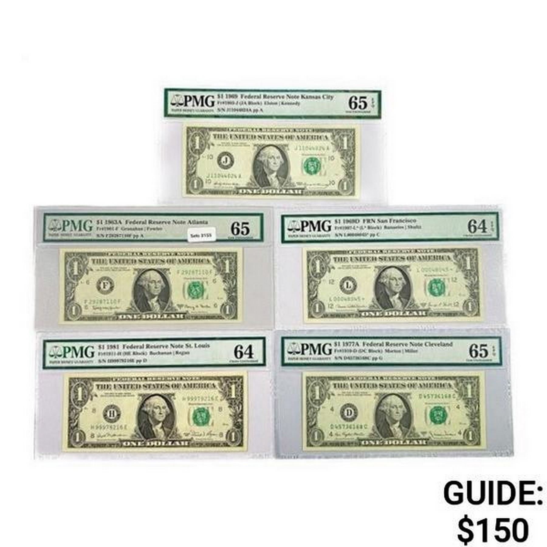 (5) 1963-1981 $1 Fed Reserve Notes PMG