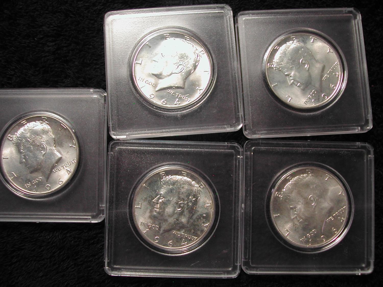 5 1964 KENNEDY HALF DOLLARS (ONE MONEY)