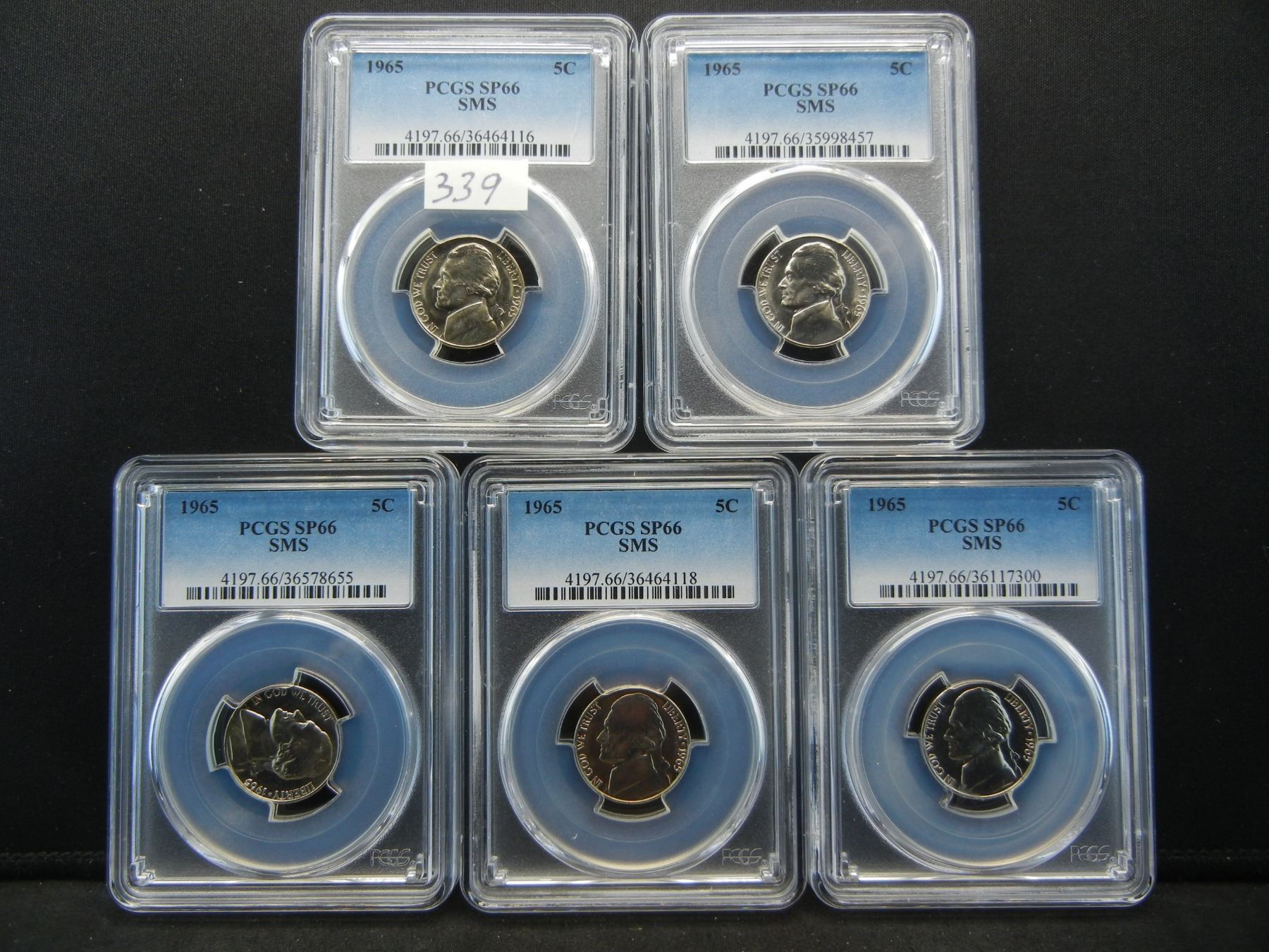 (5) 1965 SMS Jefferson Nickels PCGS SP66