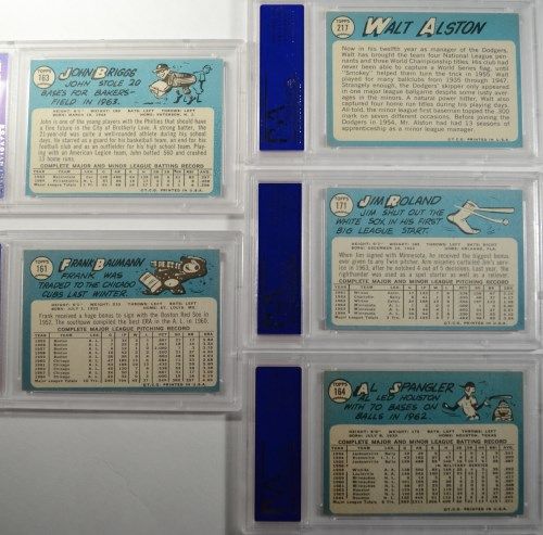 #161 FRANK BAUMANN, #163 JOHN BRIGGS, #164 AL SPANGLER, #171 JIM ROLAND, & #217 WALT ALSTON. EST. VALUE $50.00 - $70.00.