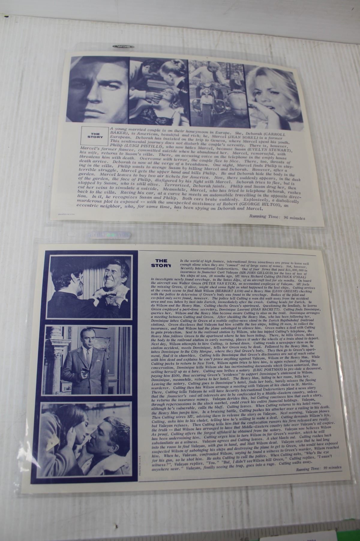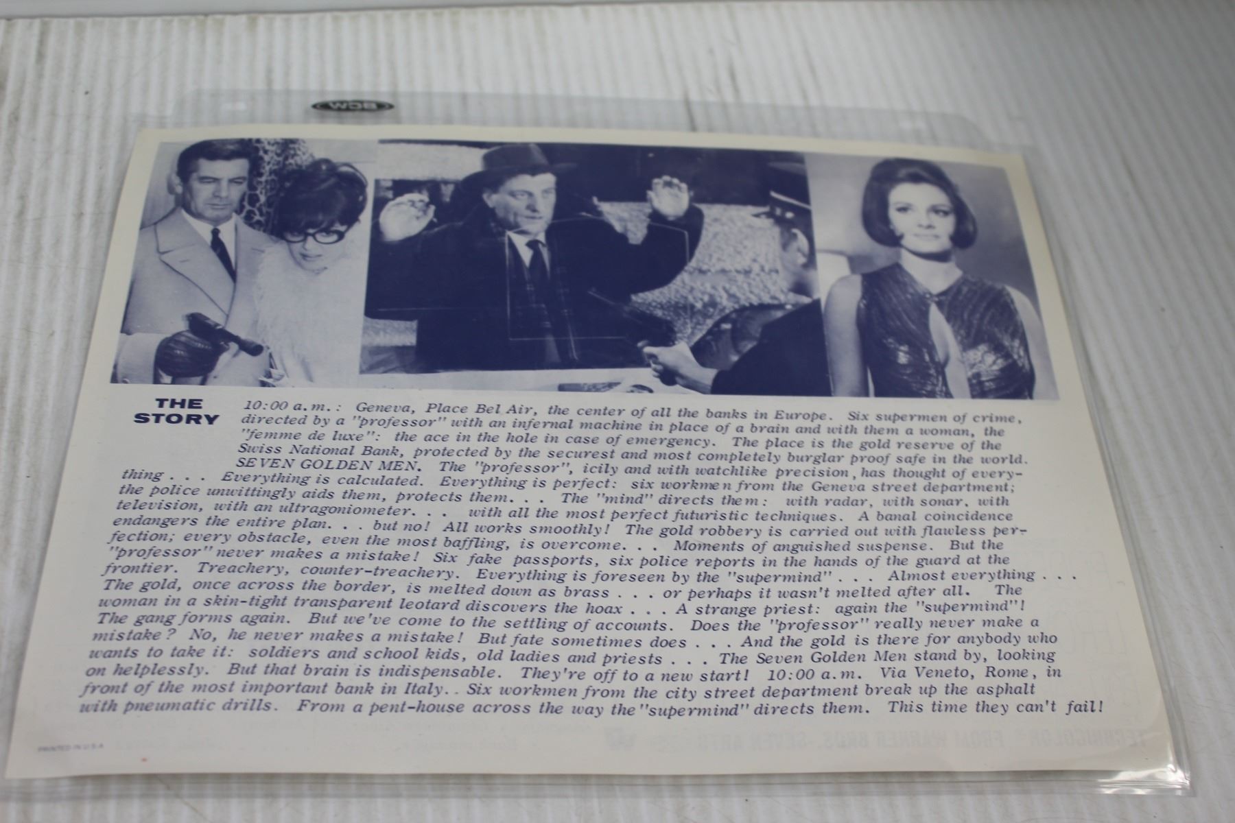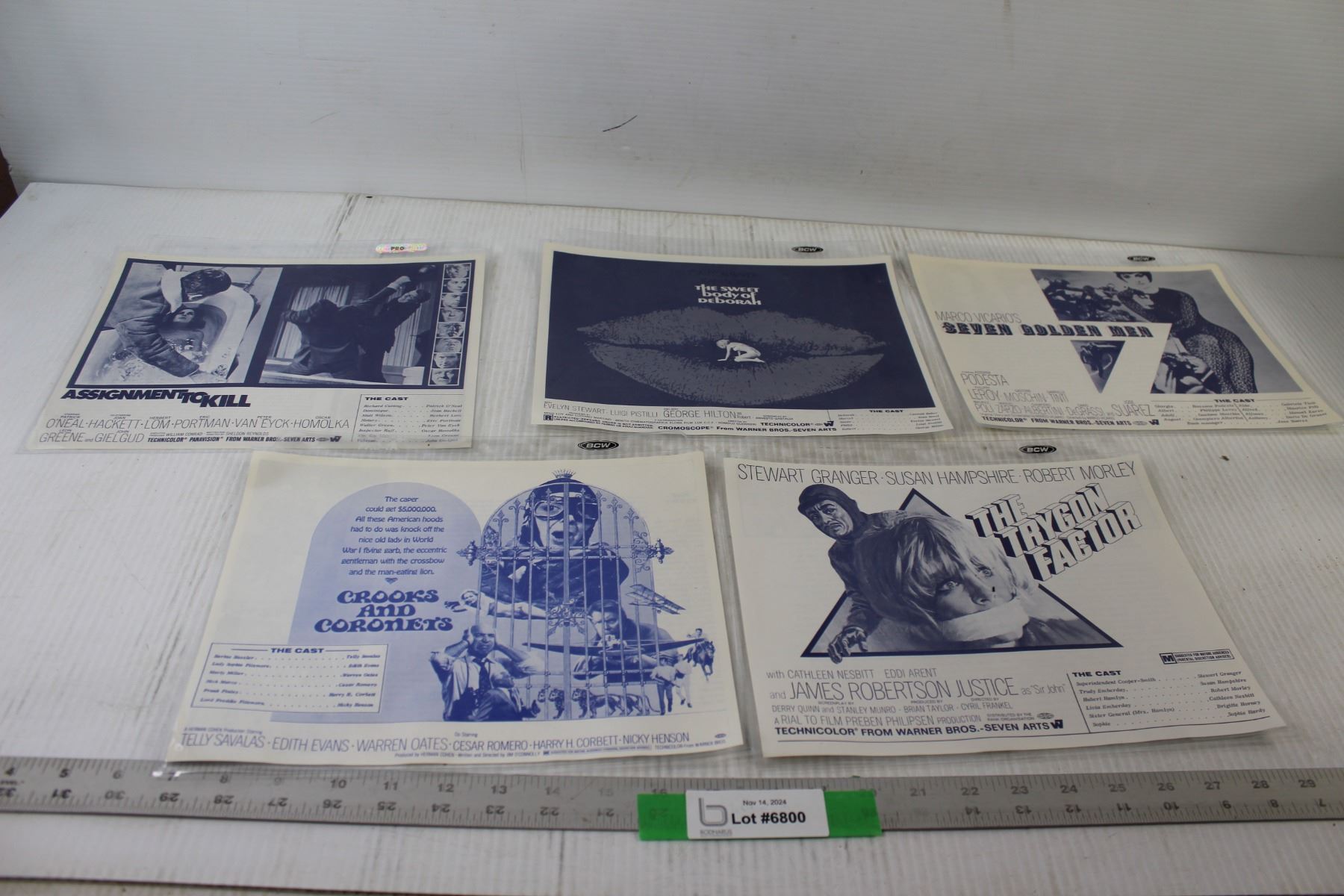 (5) 1969 Movie Synopsis Sheets - "The Trygon Factor", "Crooks and Coronets", "Seven Golden Men", " The Sweet Body Of Deborah", "Assignment To Kill" - 8 1/2" x 11" Consigner Says Mint Condition