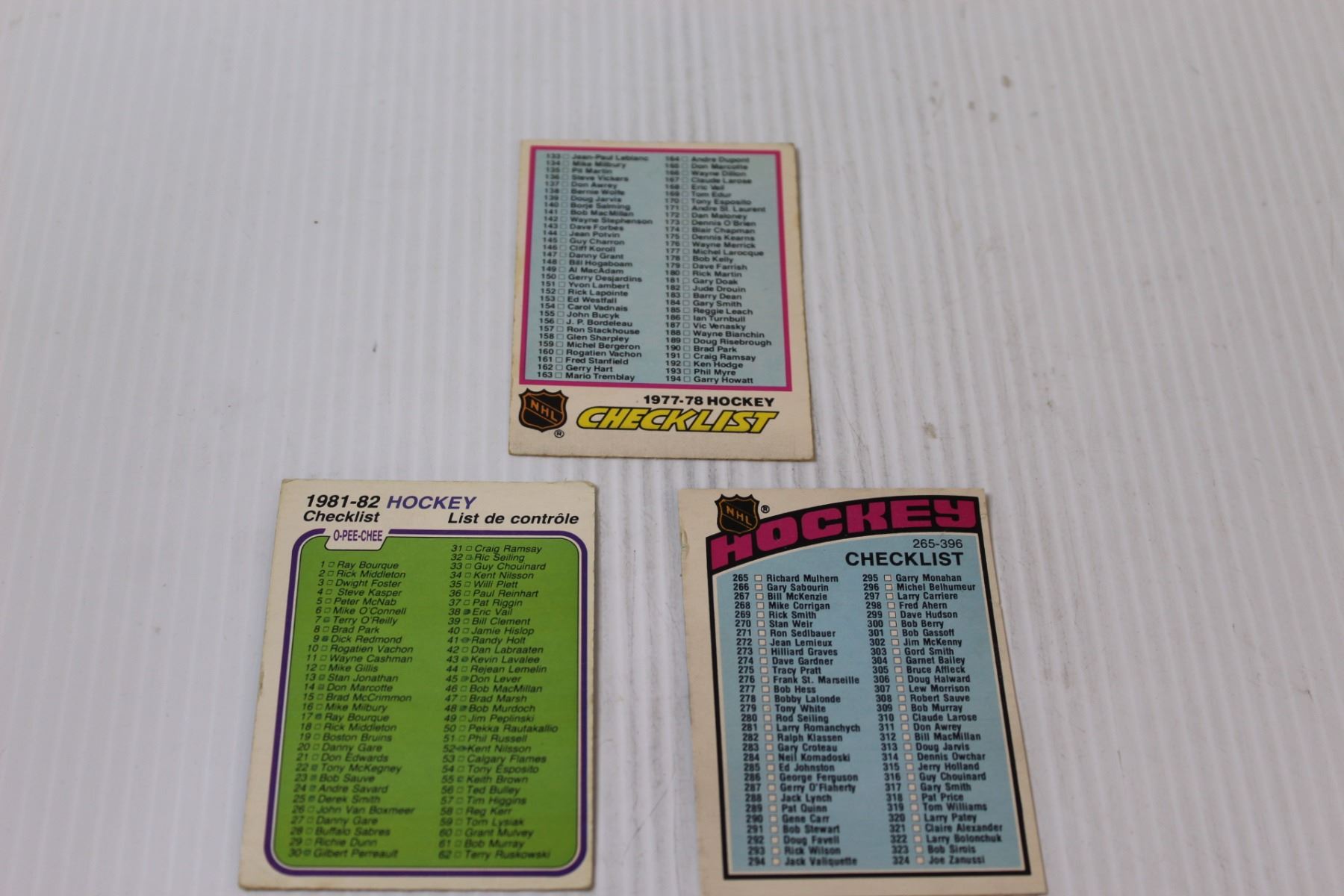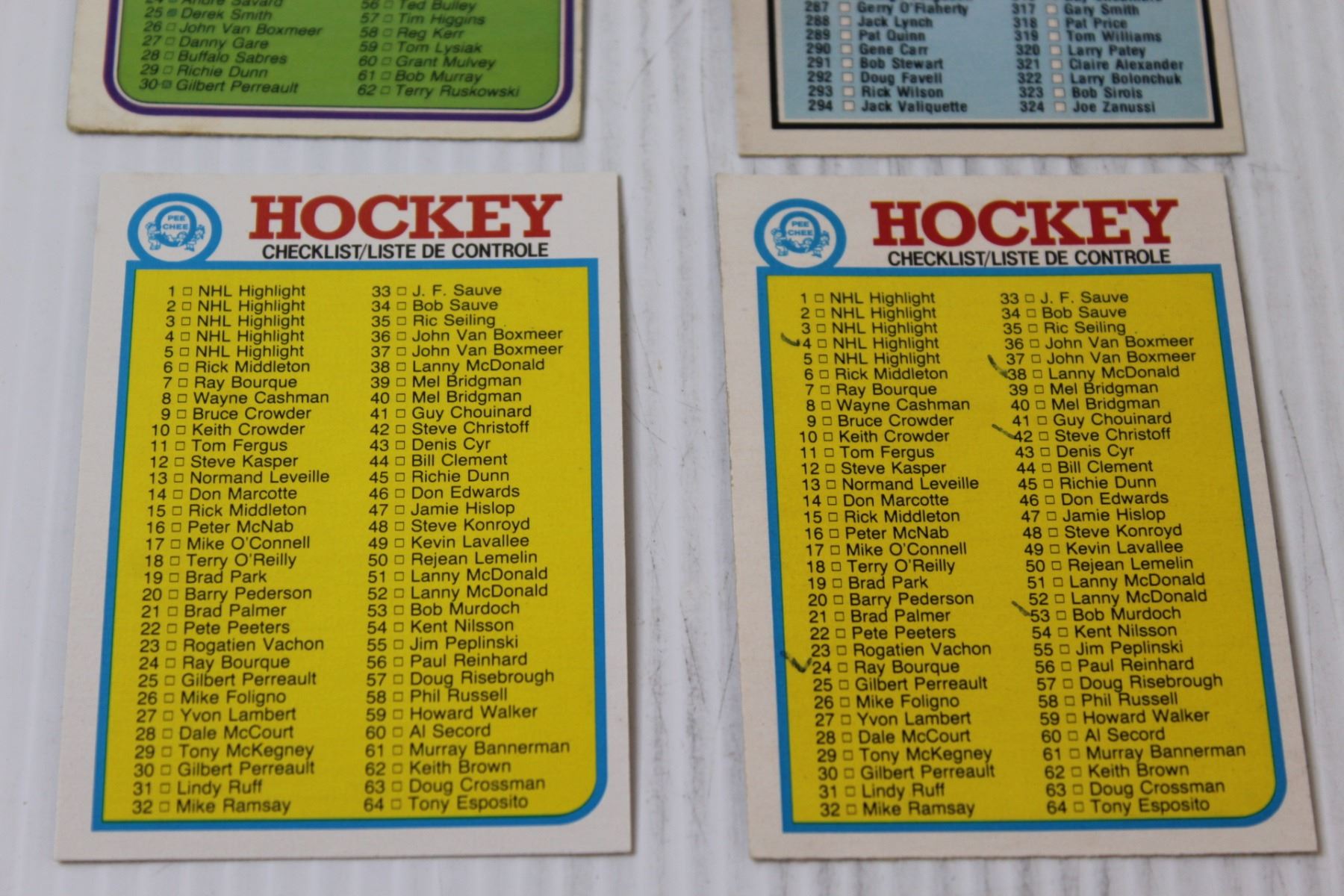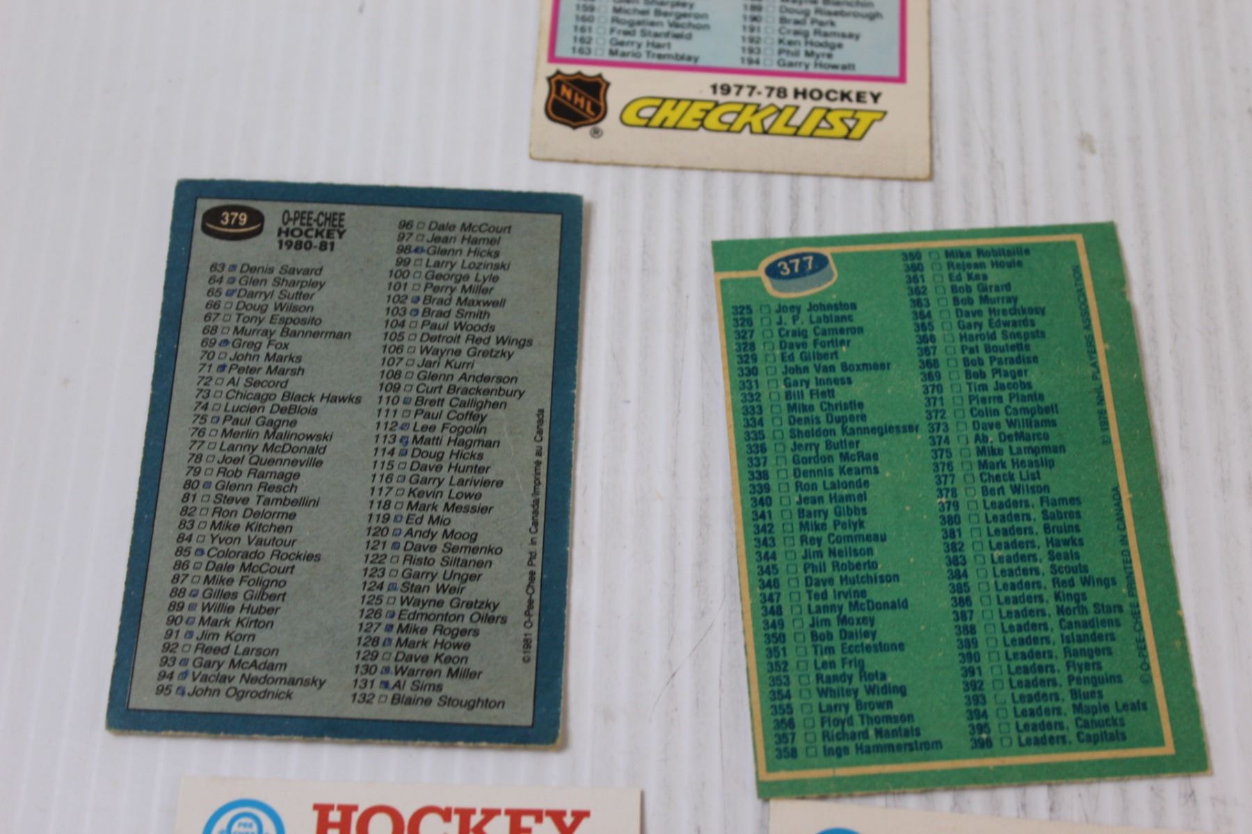 (5) 1970's & 1980's NHL OPC Card Check Lists
