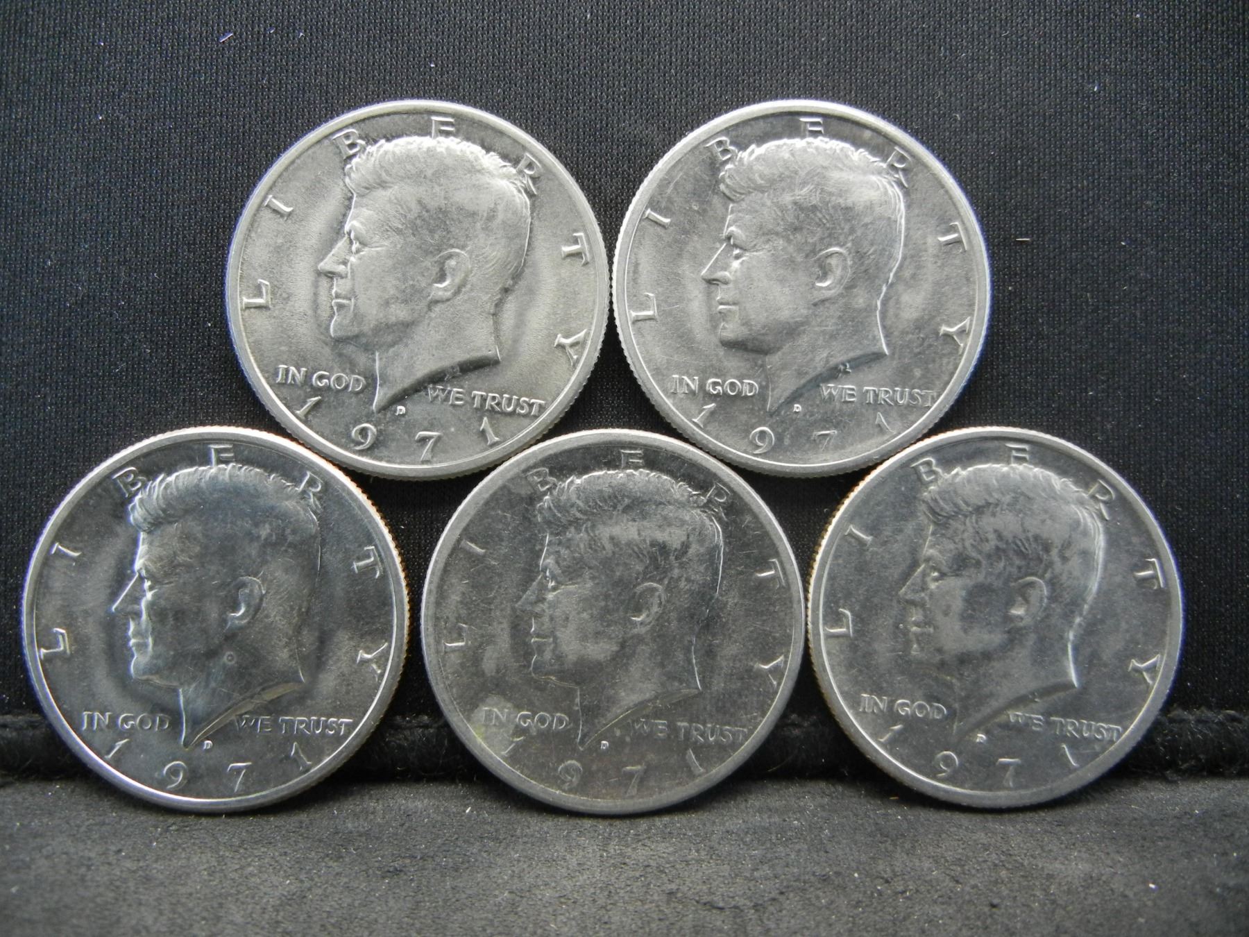 (5) 1971 Kennedy Half Dollars, Some Mint Marks