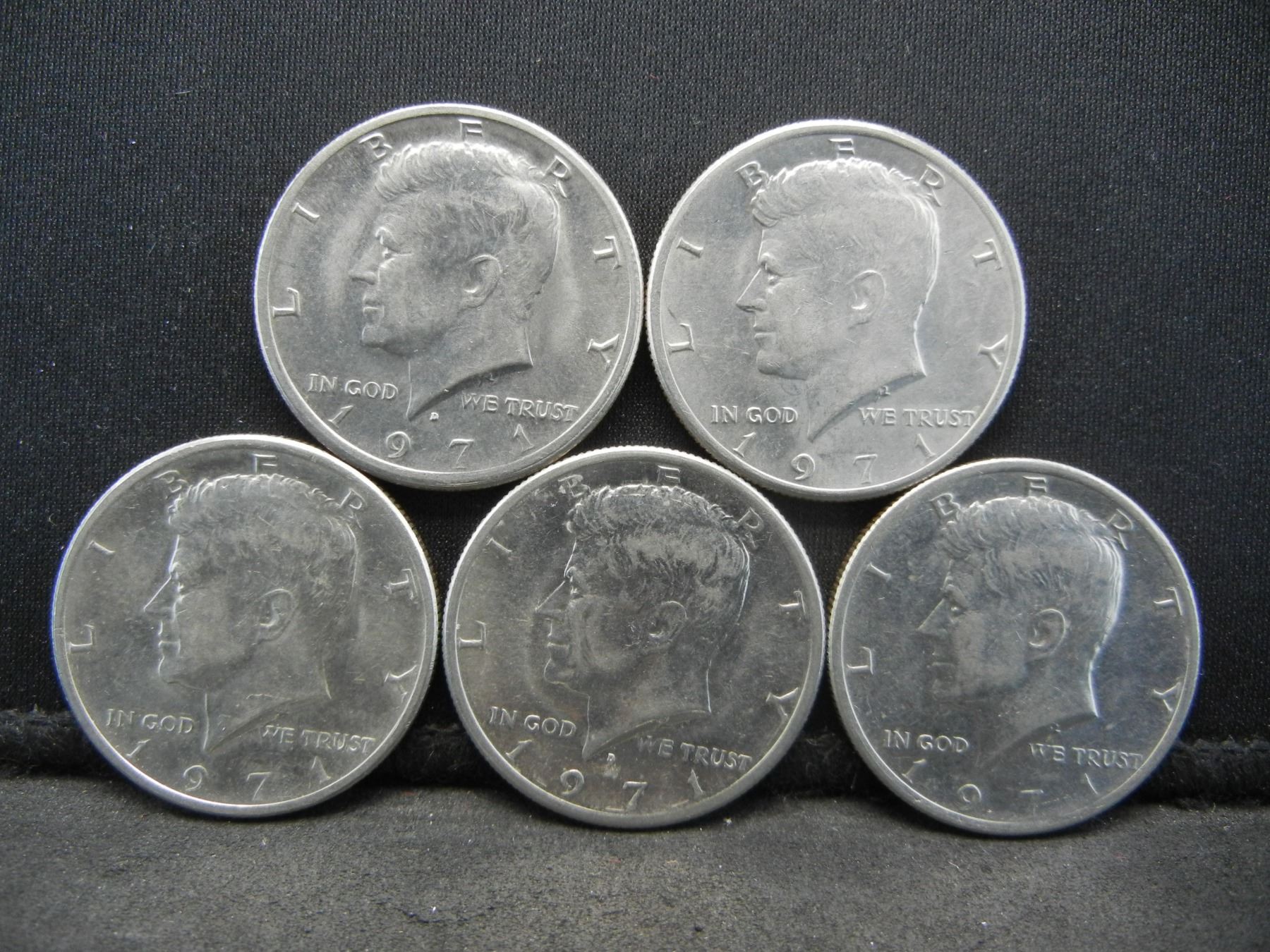 (5) 1971 Kennedy Half Dollars, Some Mint Marks