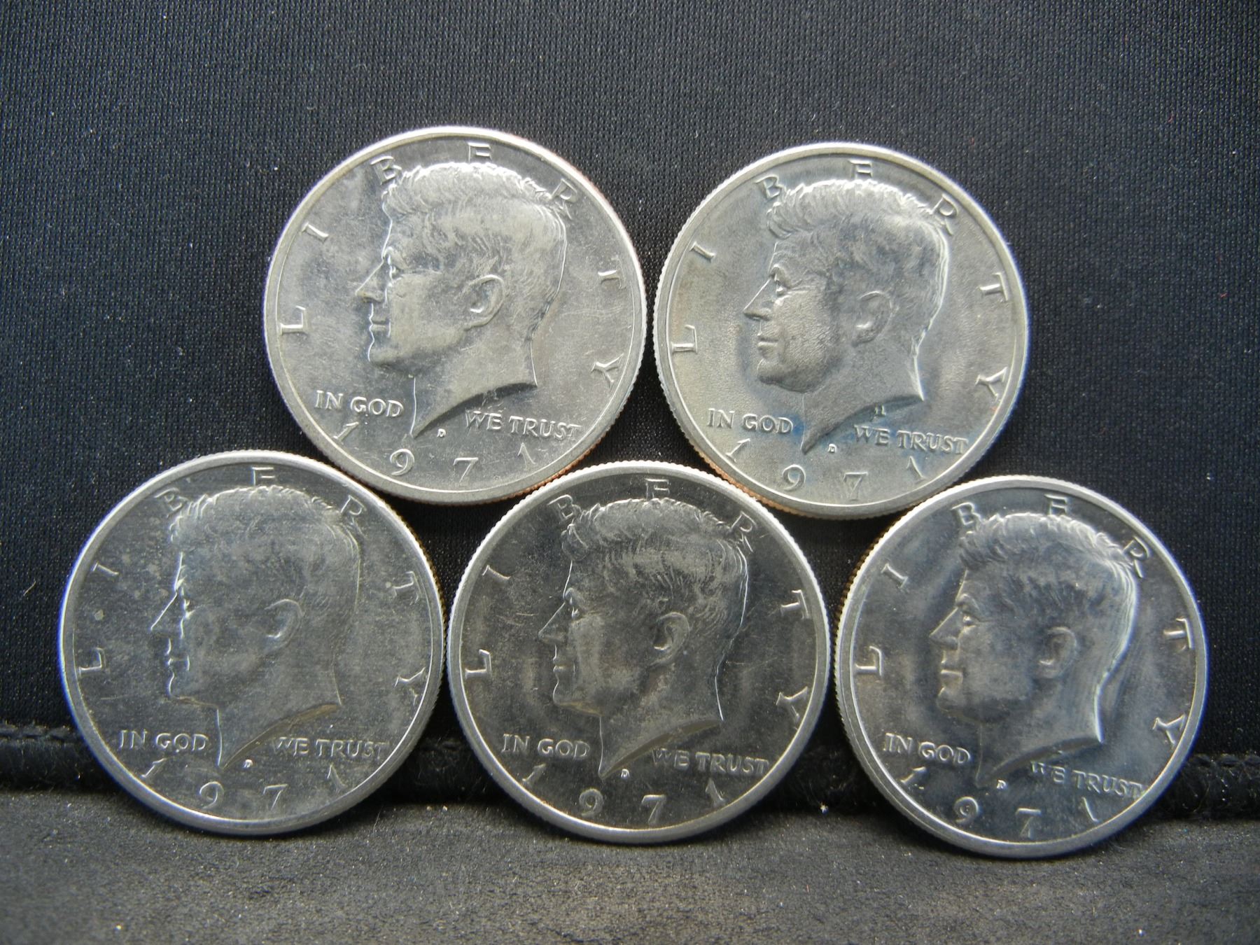 (5) 1971 Kennedy Half Dollars, Some Mint Marks