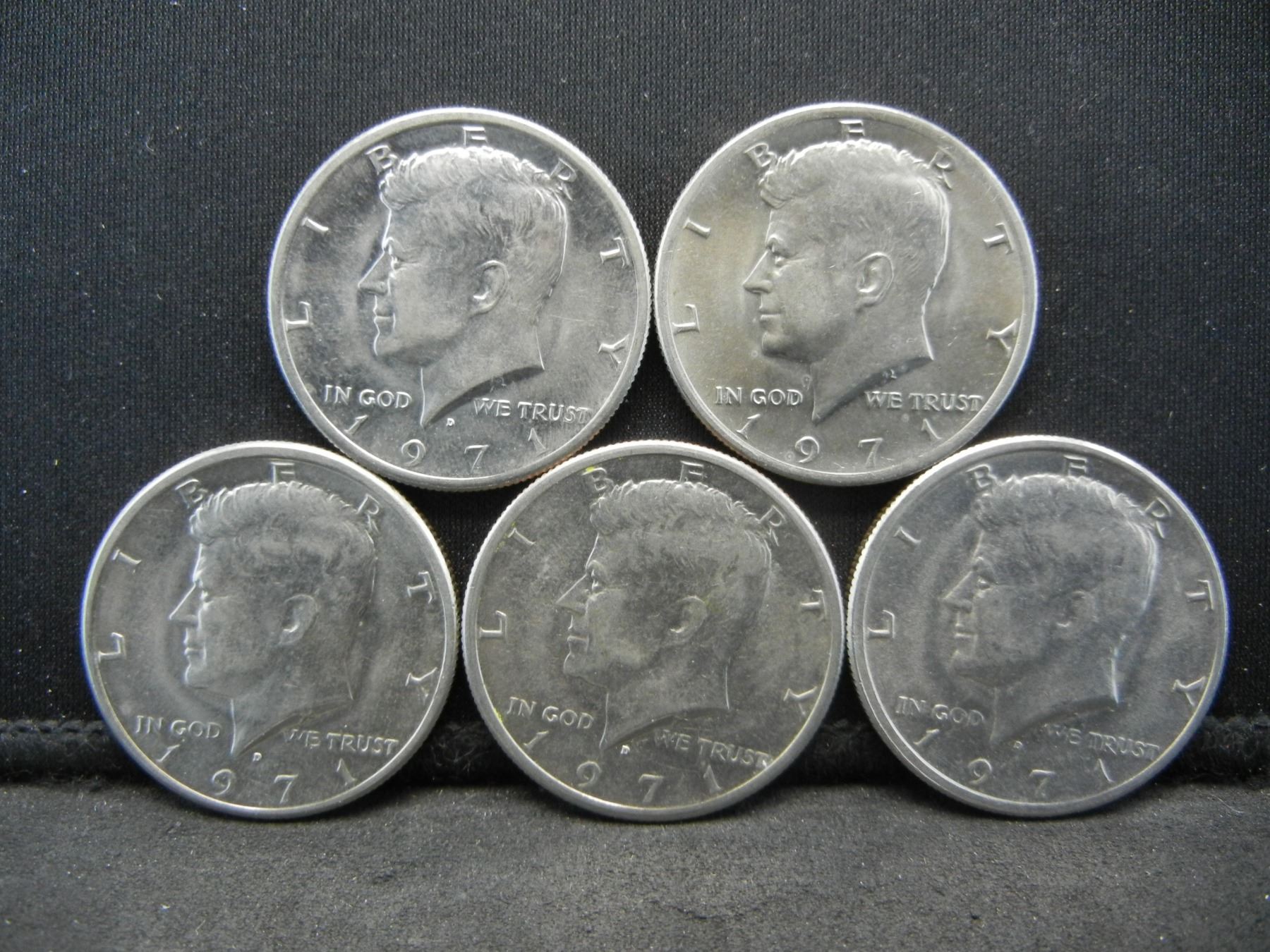 (5) 1971 Kennedy Half Dollars, Some Mint Marks