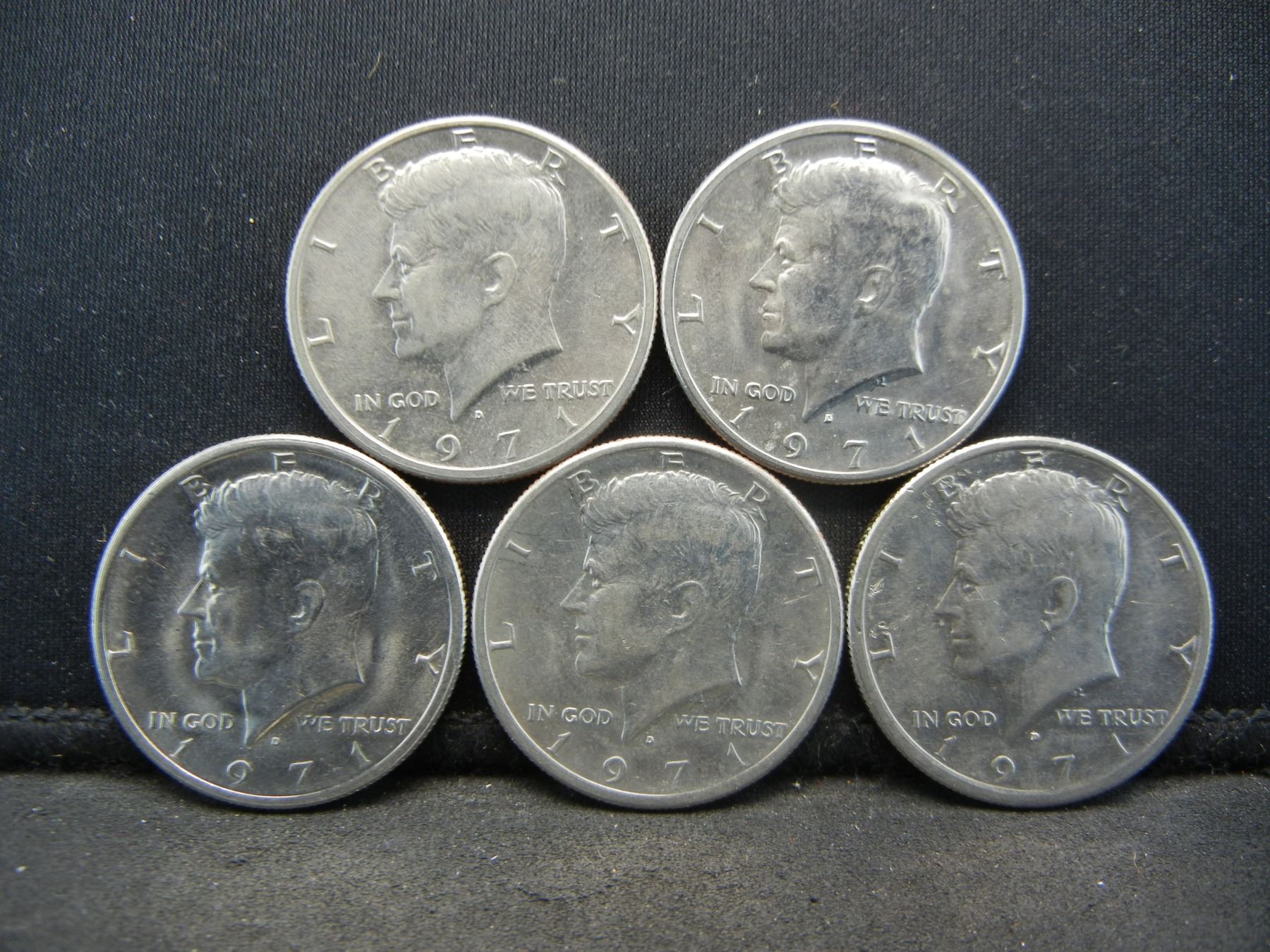 (5) 1971 Kennedy Half Dollars, Some Mint Marks
