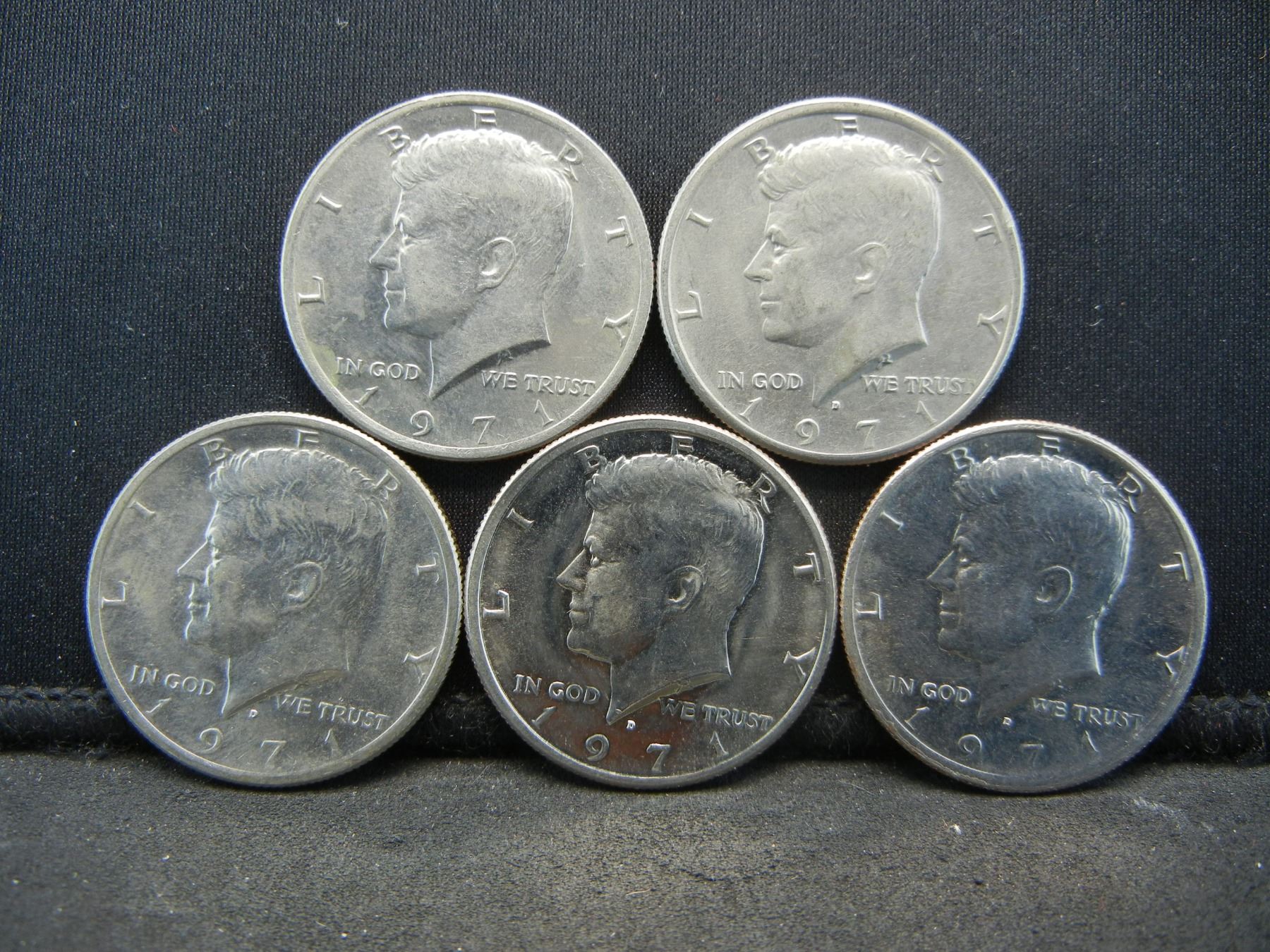(5) 1971 Kennedy Half Dollars, Some Mint Marks