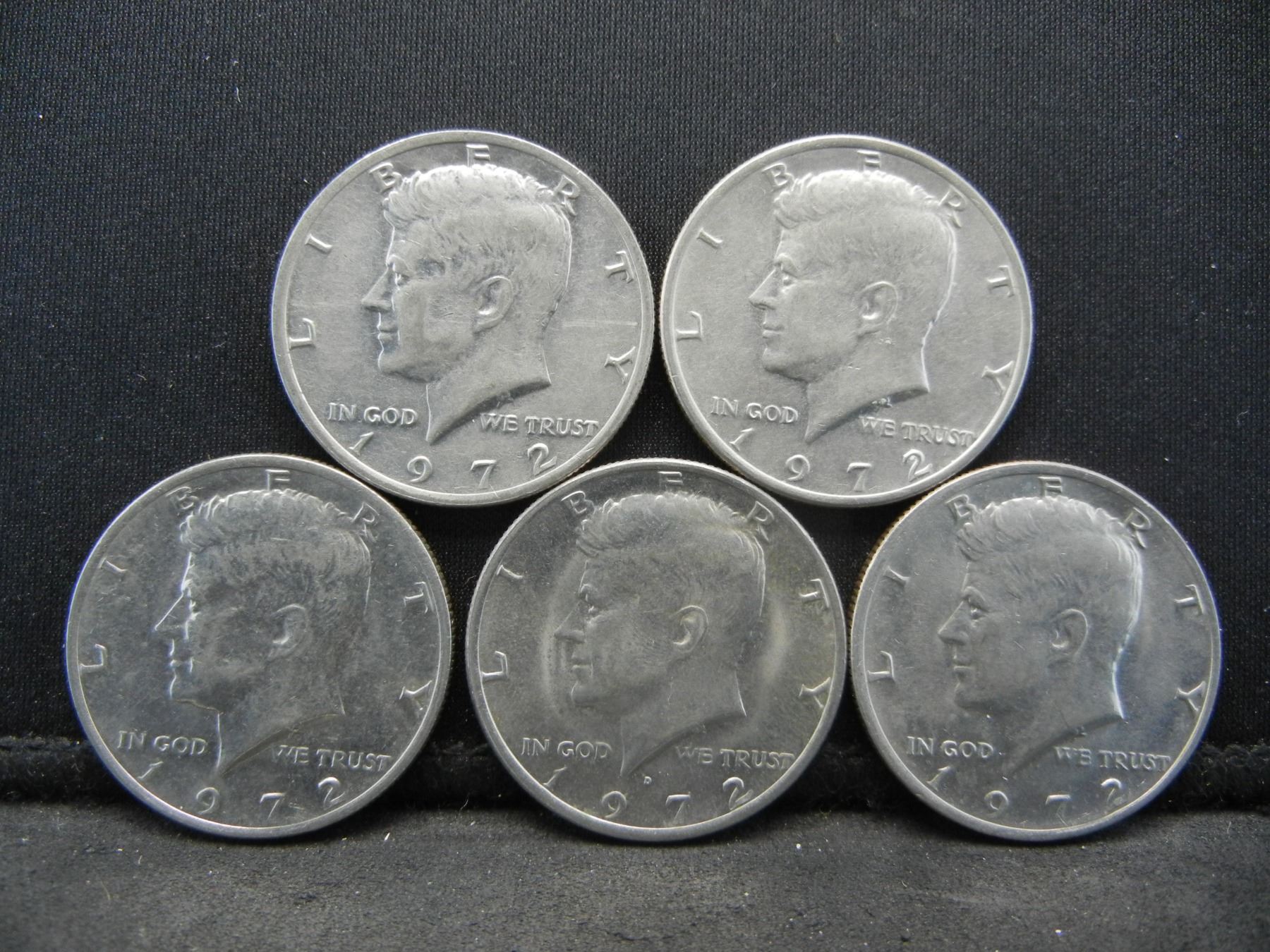 (5) 1972 Kennedy Half Dollars, Some Mint Marks