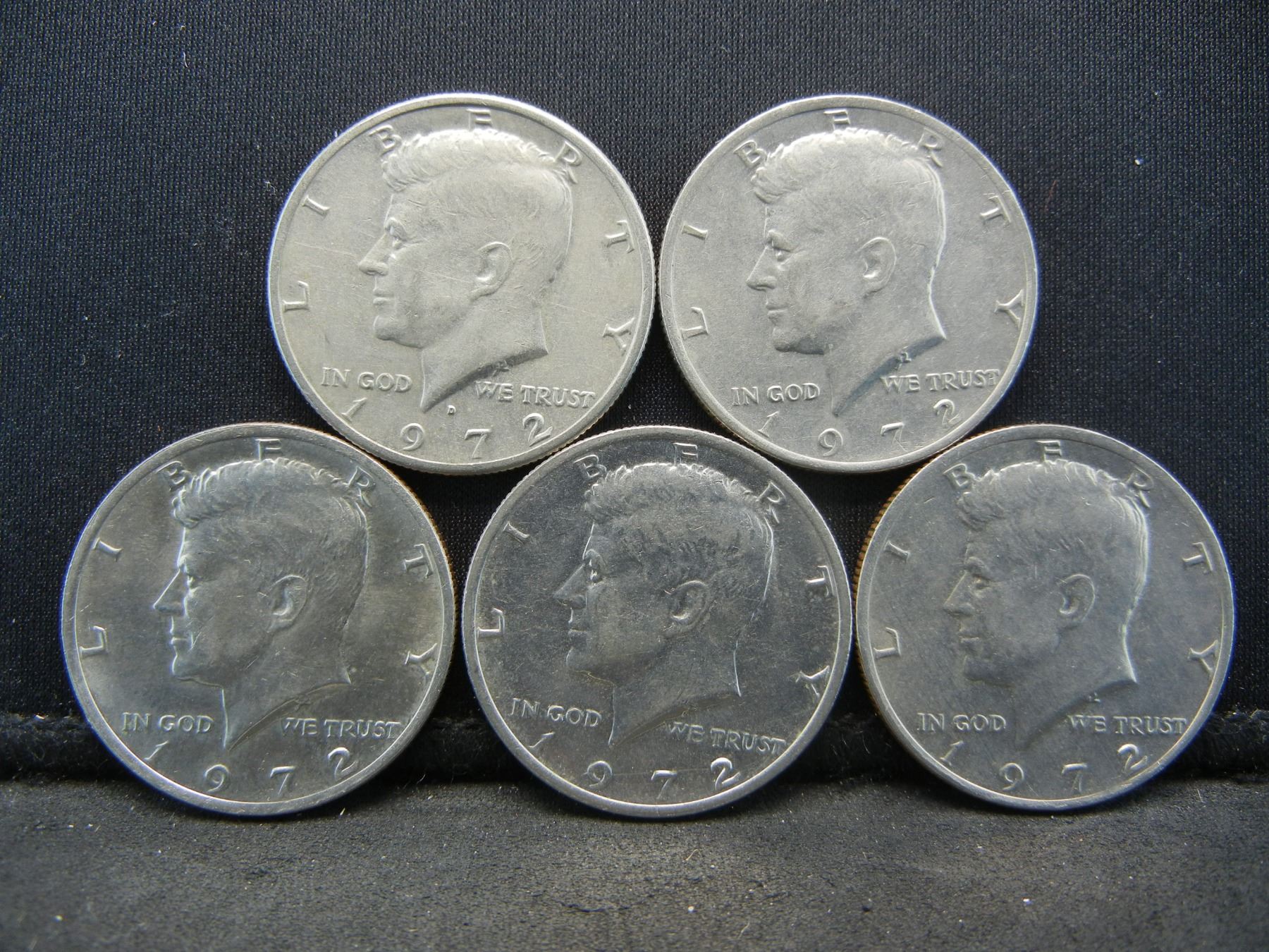 (5) 1972 Kennedy Half Dollars, Some Mint Marks
