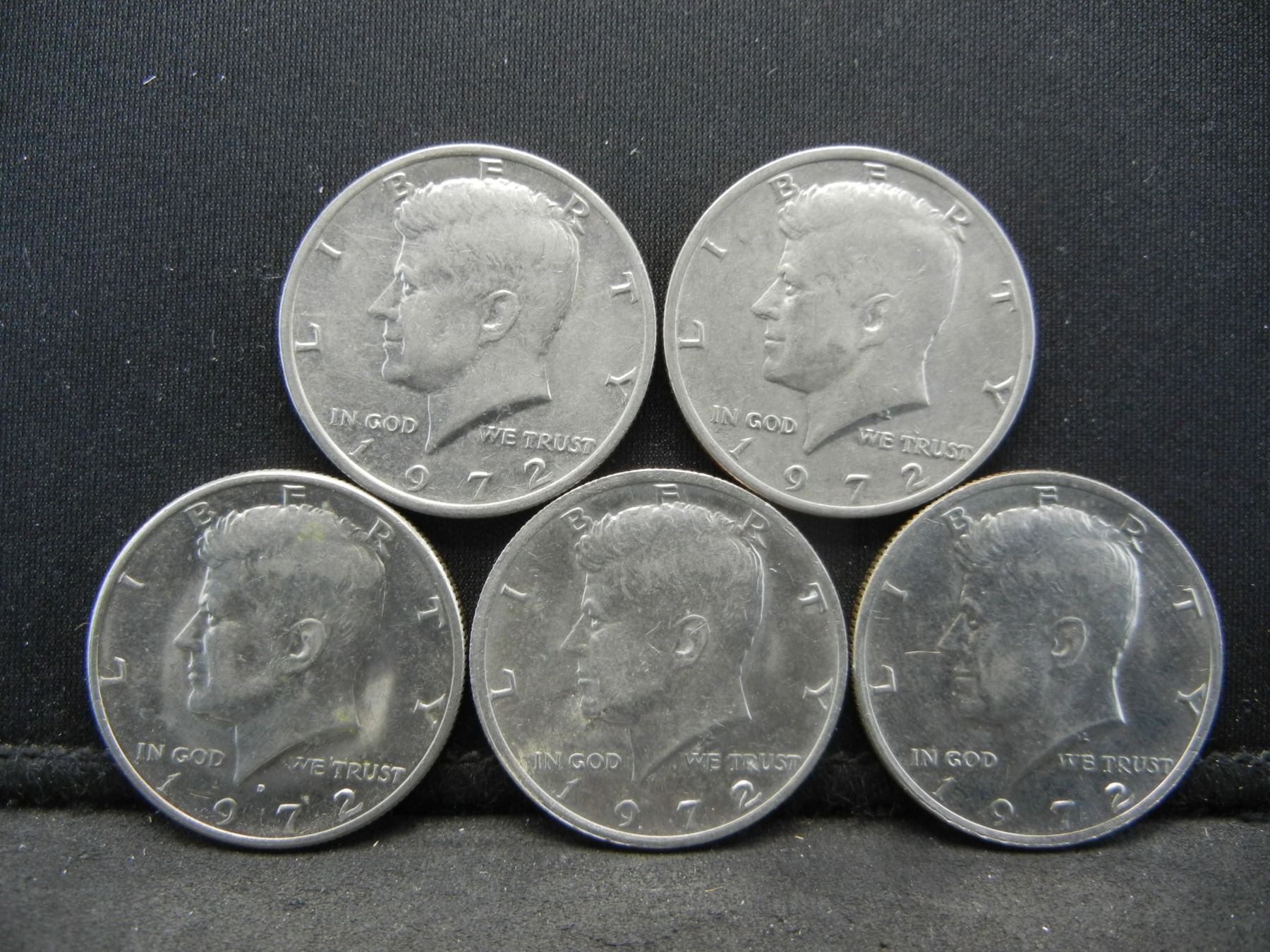 (5) 1972 Kennedy Half Dollars, Some Mint Marks