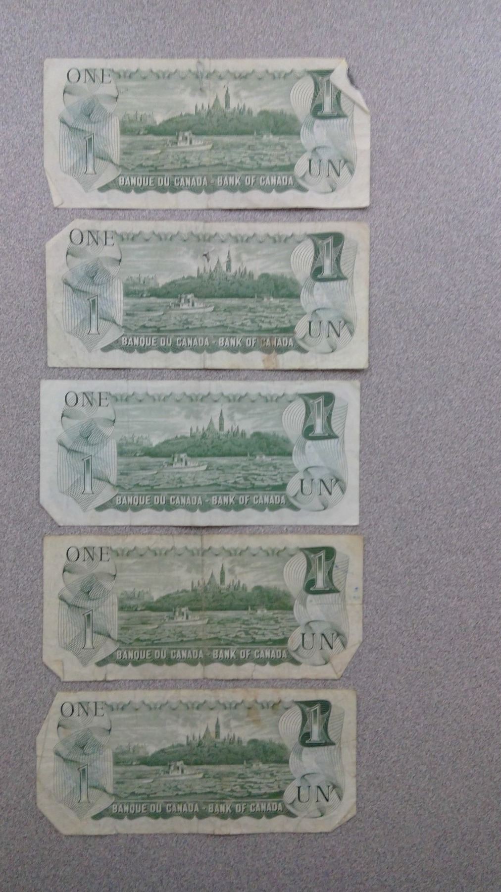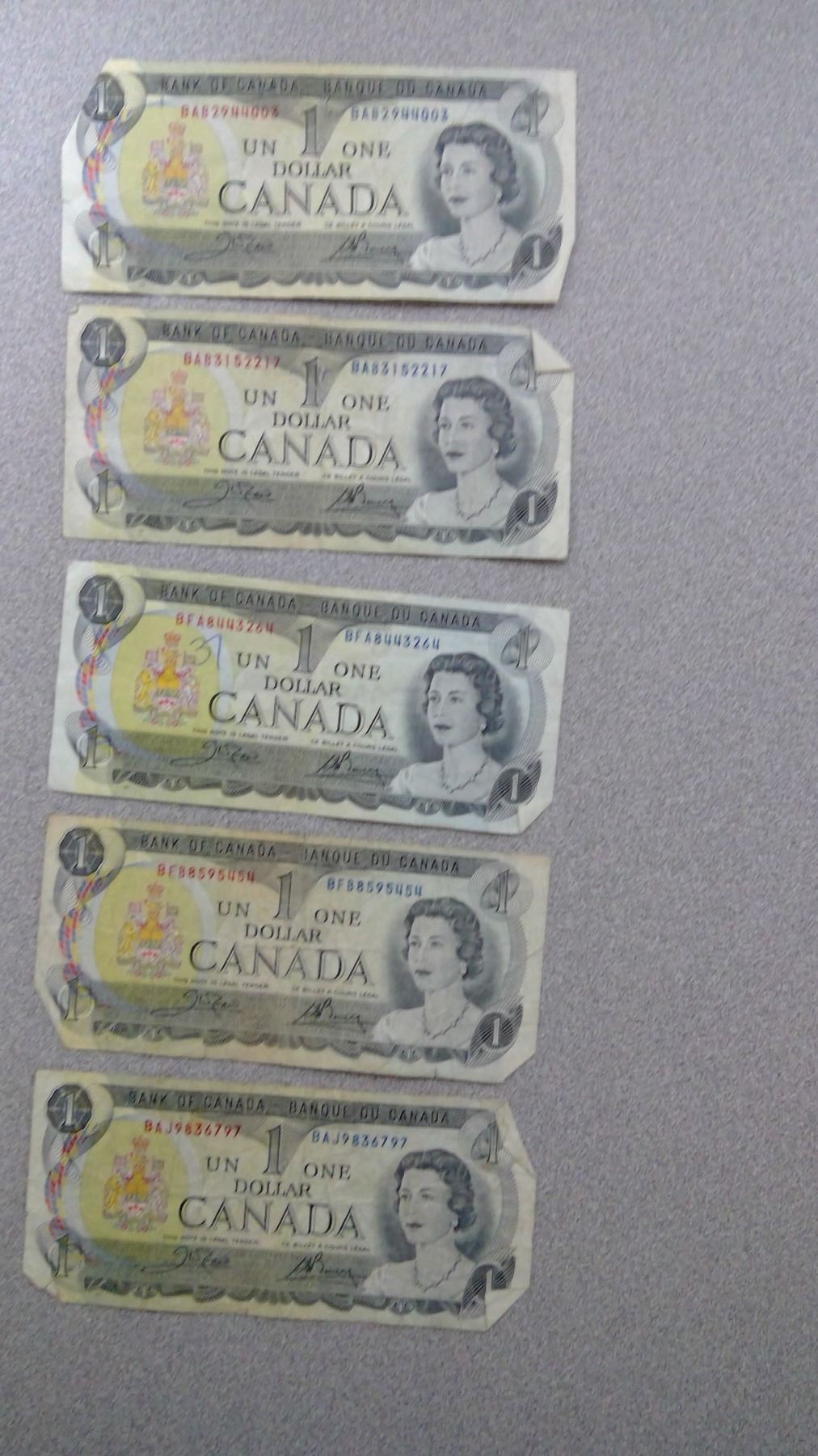 5 1973 $1 Bills in Plastic Bag