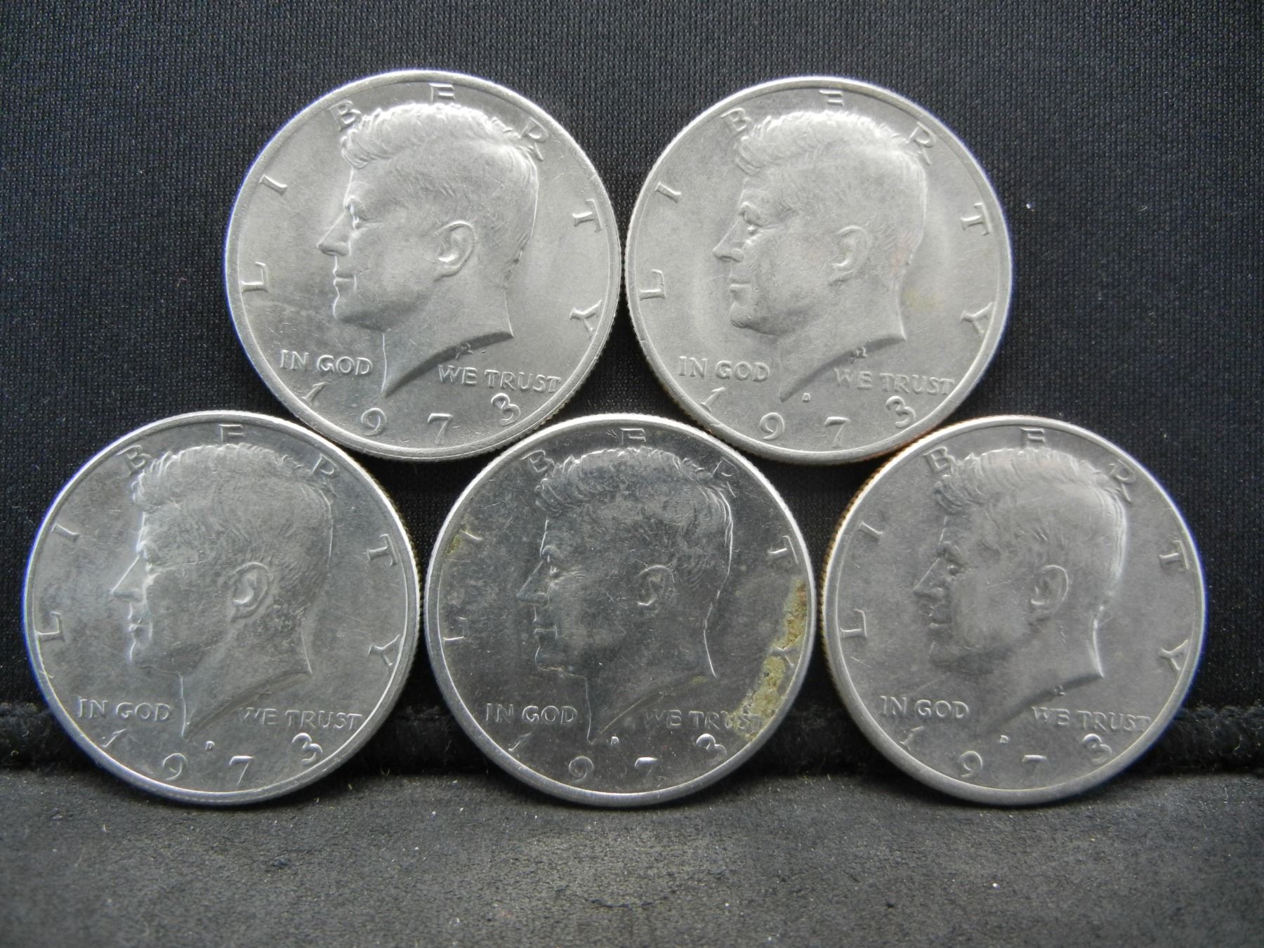 (5) 1973 Kennedy Half Dollars, Some Mint Marks