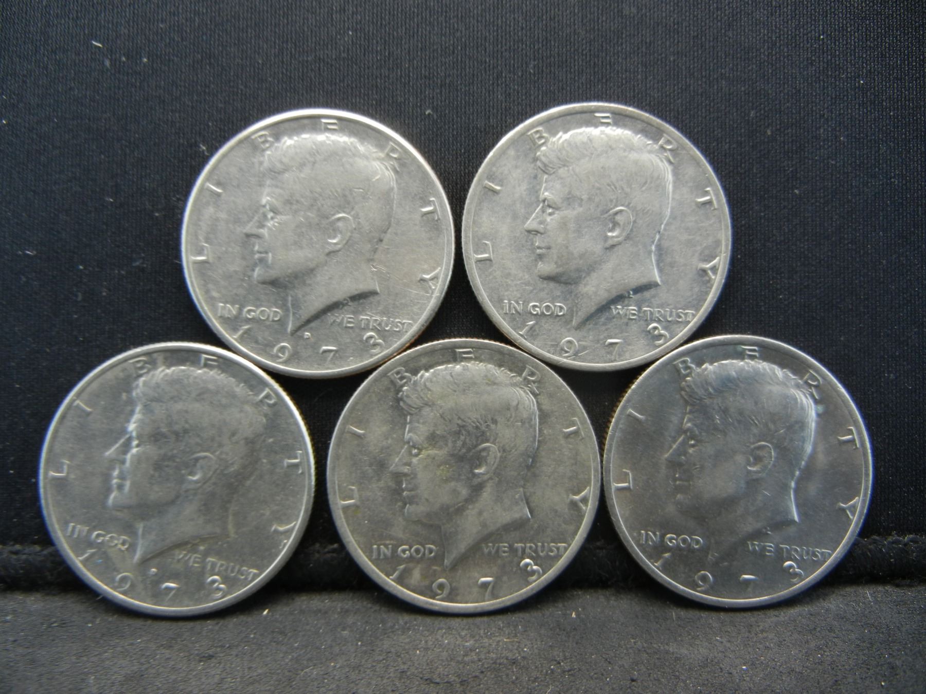 (5) 1973 Kennedy Half Dollars, Some Mint Marks