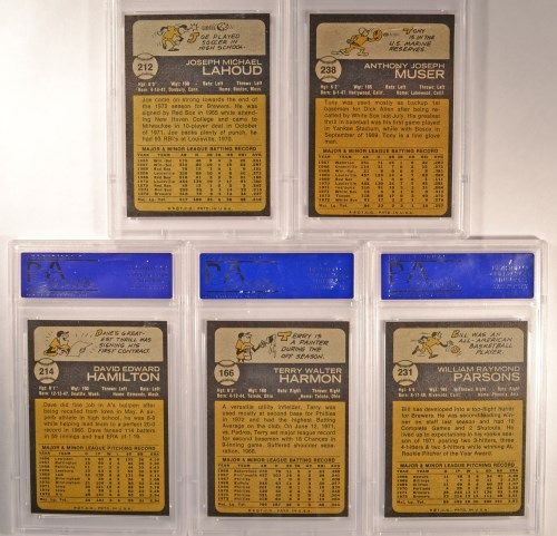 #166 Terry Harmon, #212 Joe Lahoud, #214 Dave Hamilton, #231 Bill Parsons, #238 Tony Muser. Est Value $125.00 - $150.00.