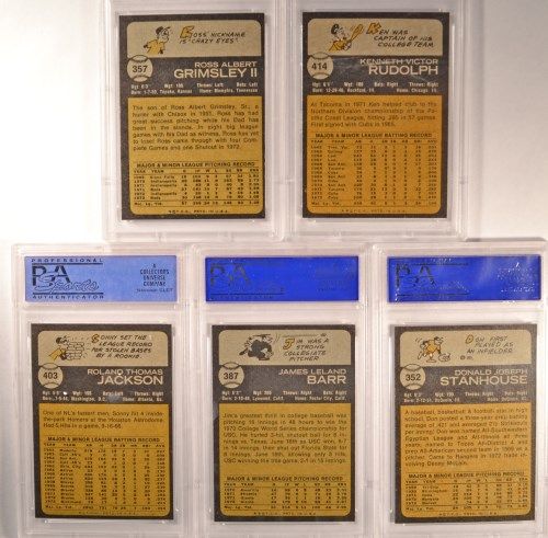 #352 Don Stanhouse, #357 Ross Grimsley, #387 Jim Barr, #403 Sonny Jackson, #414 Ken Rudolph. Est. Value $125.00 -$150.00.