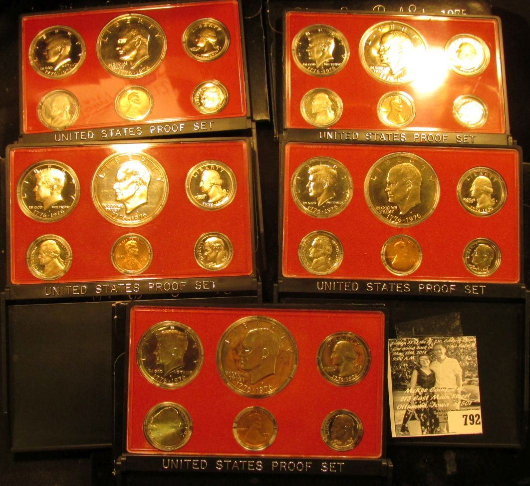 (5) 1975 S U.S. Bicentennial Proof Sets in orginal holder and shipping box.