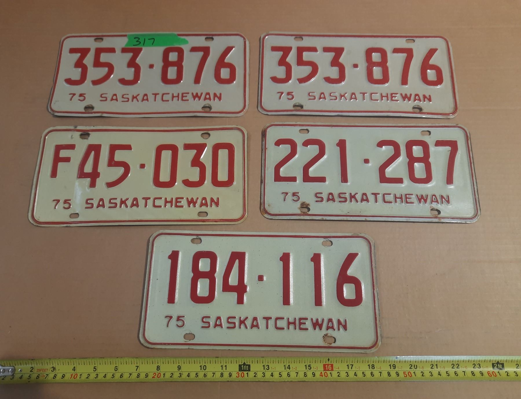 (5) 1975 Saskatchewan License Plates. (One Pair)