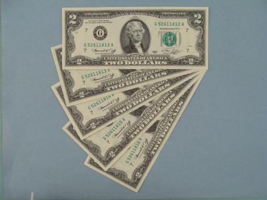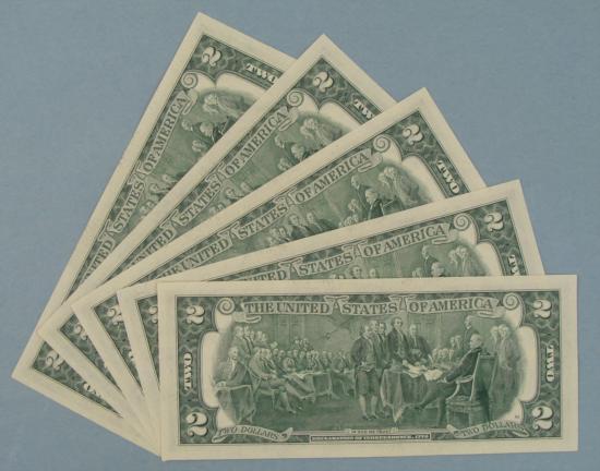 (5) 1976 $2 bills, all with Consecutive serial numbers
