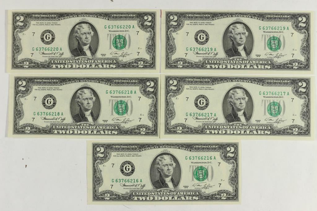 5-1976 $2 FRN'S CRISP UNC CONSECUTIVE SERIAL #'S
