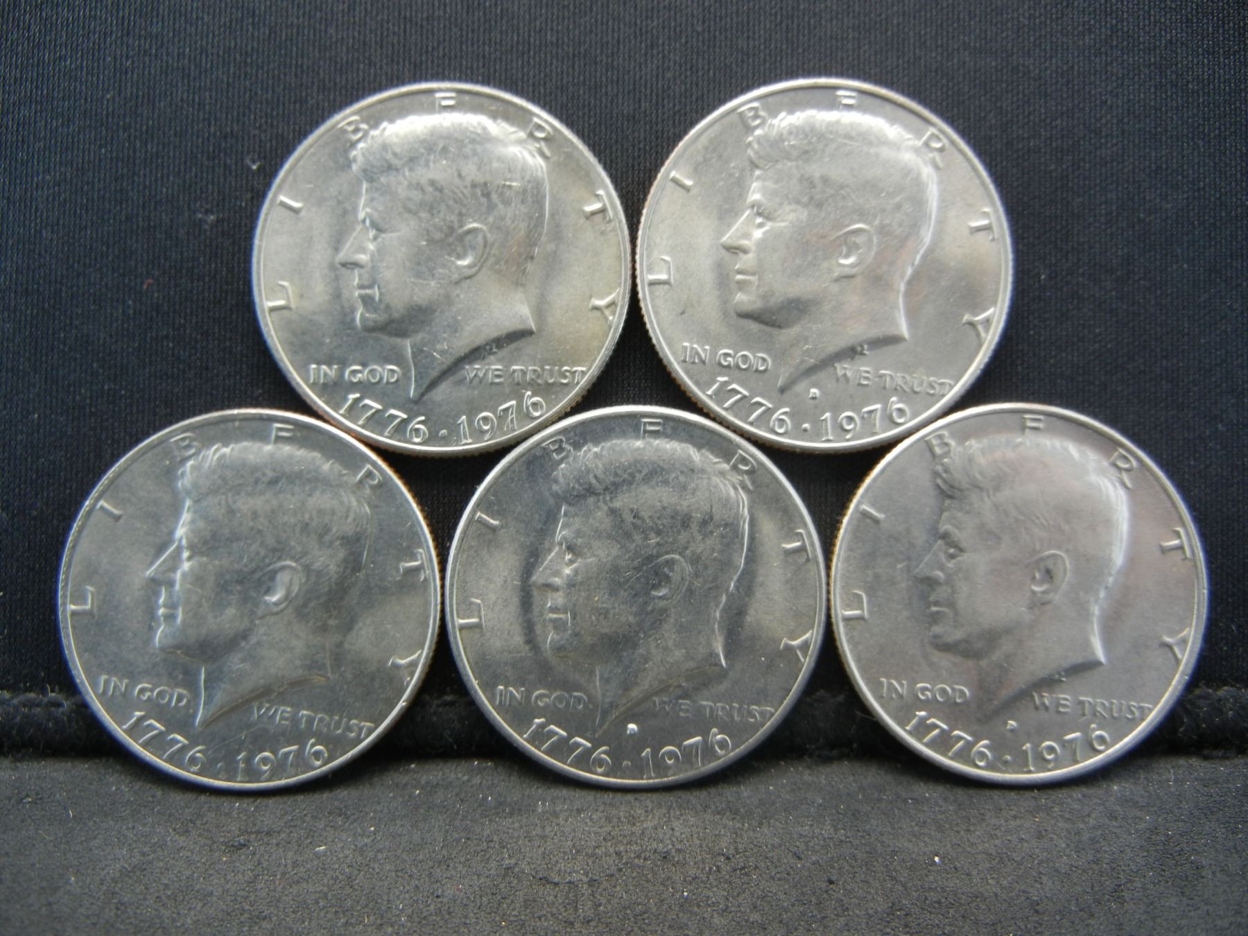 (5) 1976 Bicentennial Kennedy Half Dollars, Some Mint Marks