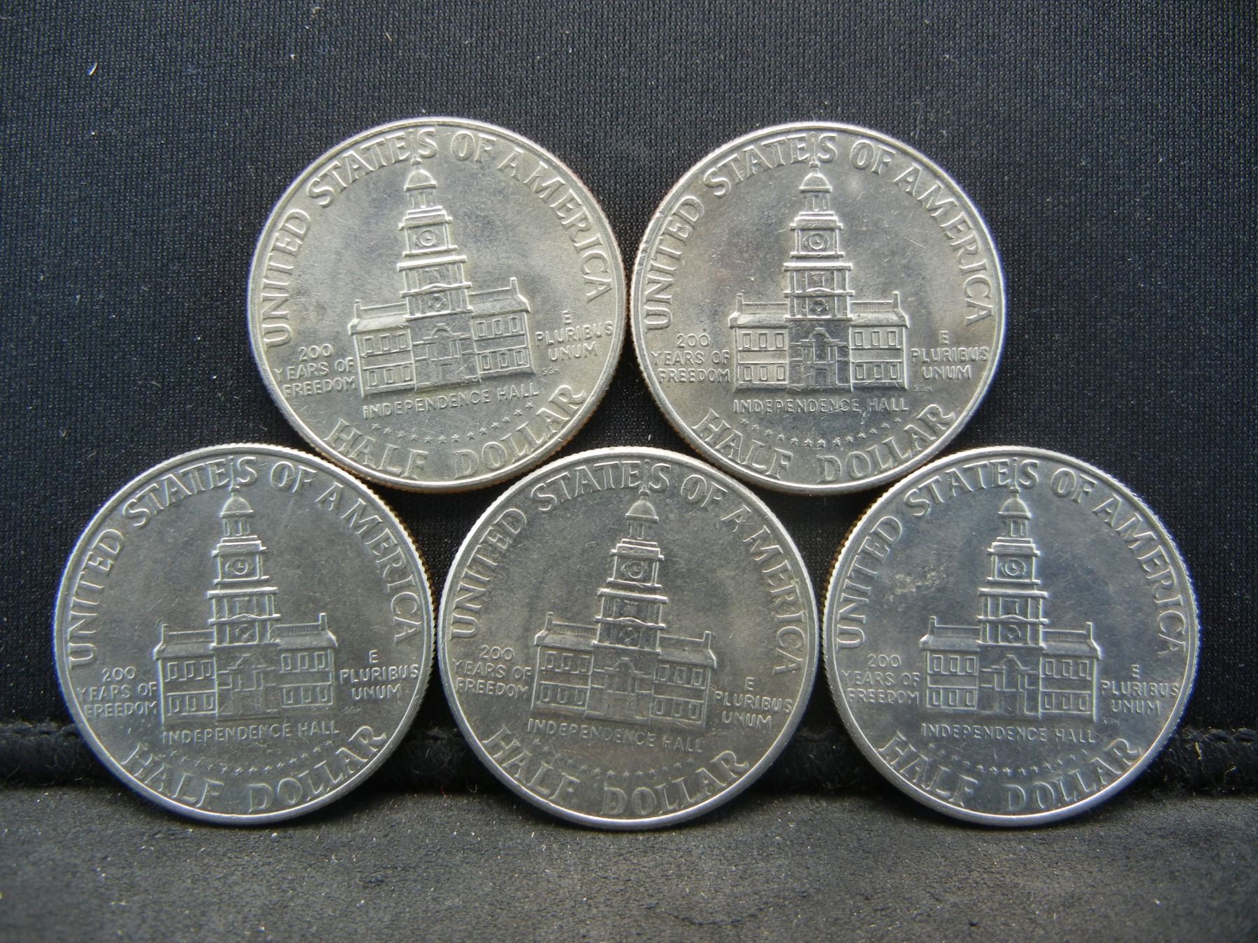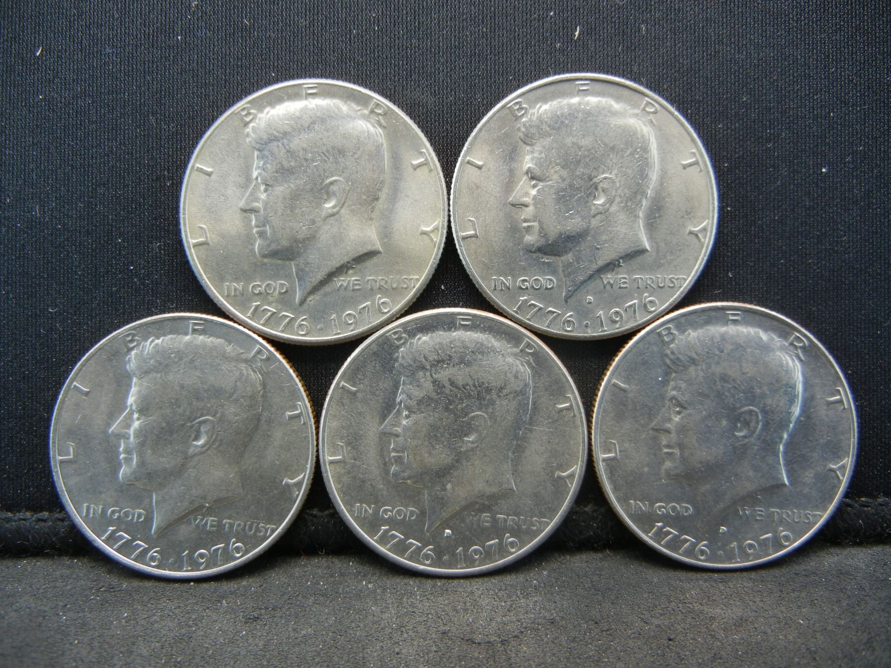 (5) 1976 Bicentennial Kennedy Half Dollars, Some Mint Marks