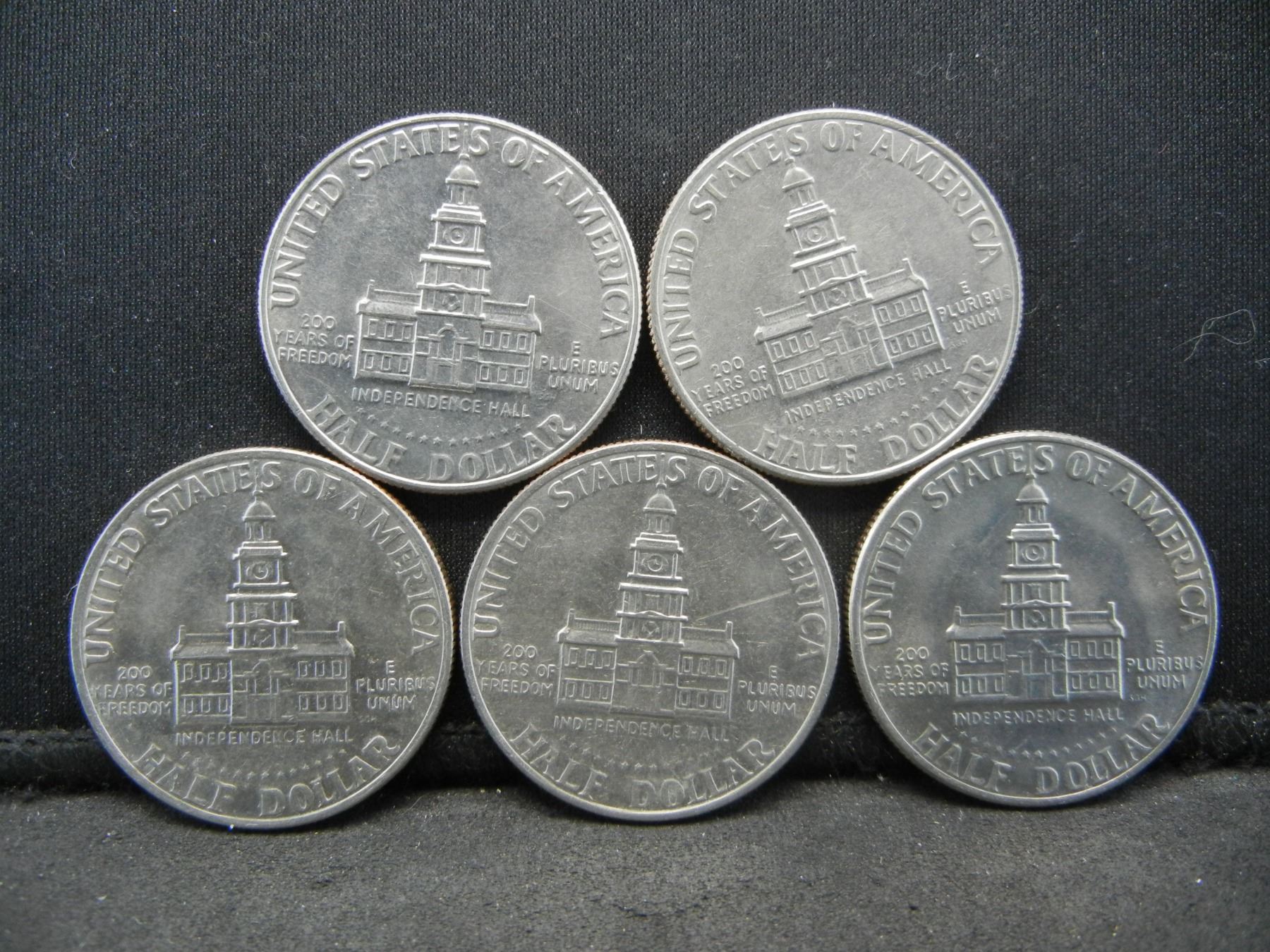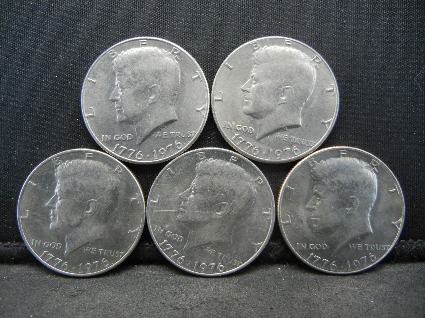 (5) 1976 Bicentennial Kennedy Half Dollars, Some Mint Marks