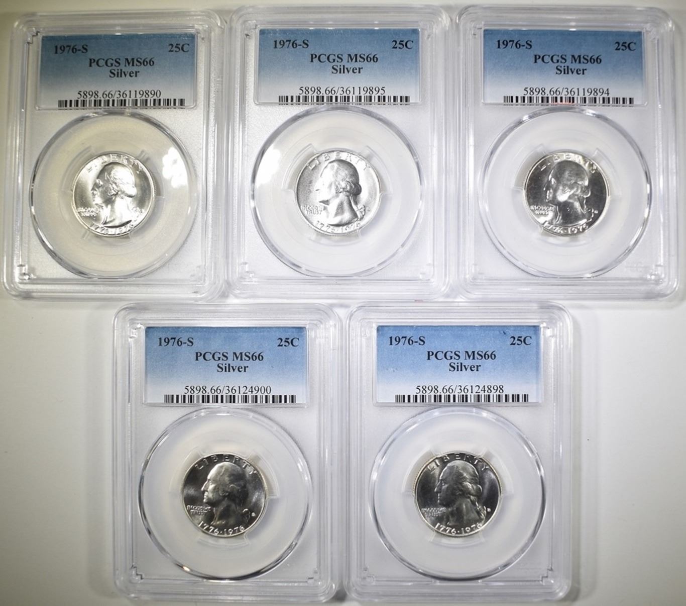 5-1976-S SILVER WASHINGTON QUARTERS, PCGS MS-66