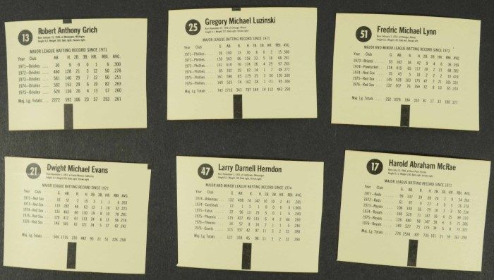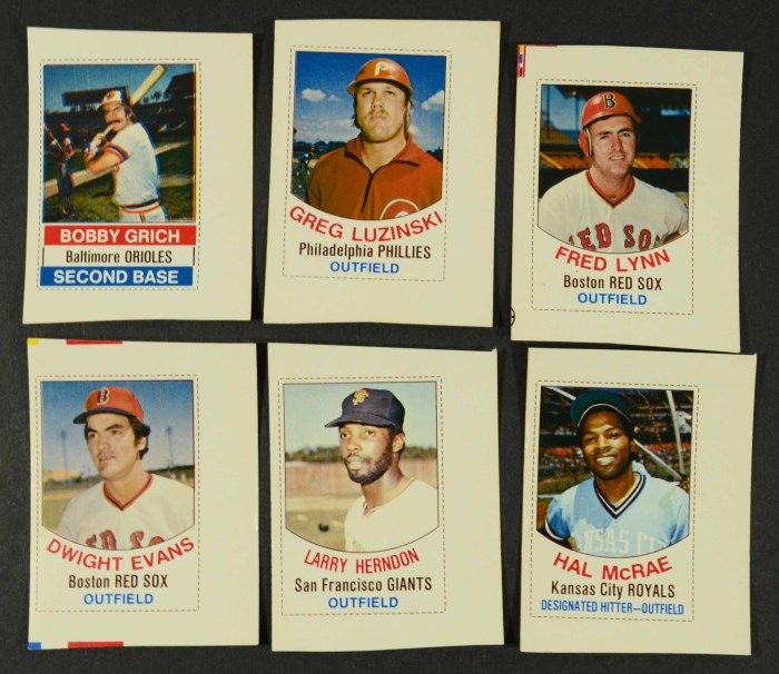 RARE TO FIND HOSTESS TWINKIE CARDS IN SUCH NM-MT CONDITION, NO STAINS, INCLUDES HAL McRAE, LARRY HERNDON, DWIGHT EVANS, FRED LYNN, GREG LUZINSKI, BOOBY GRICH, NICE LOT, EST $40-$50