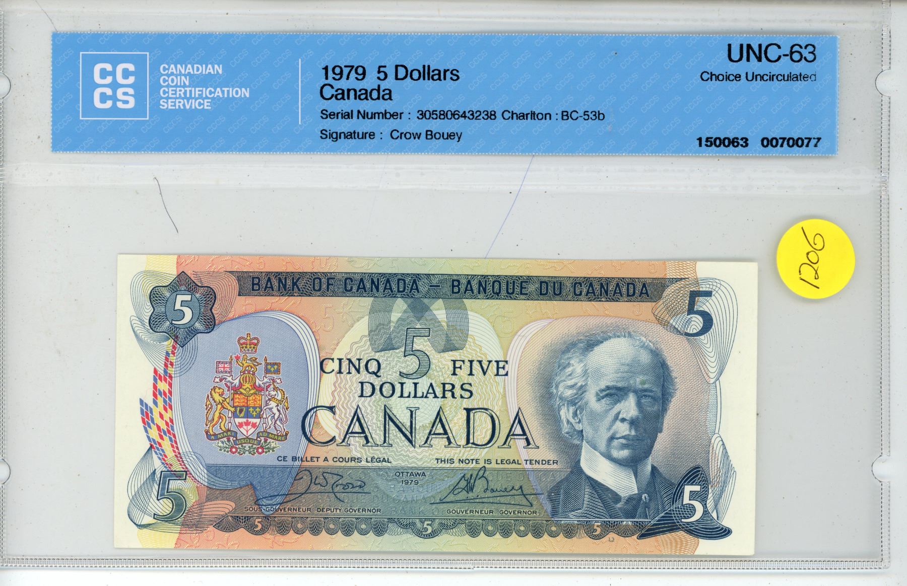 $5 1979 Canadian Note UNC-63 - CCCS - Graded