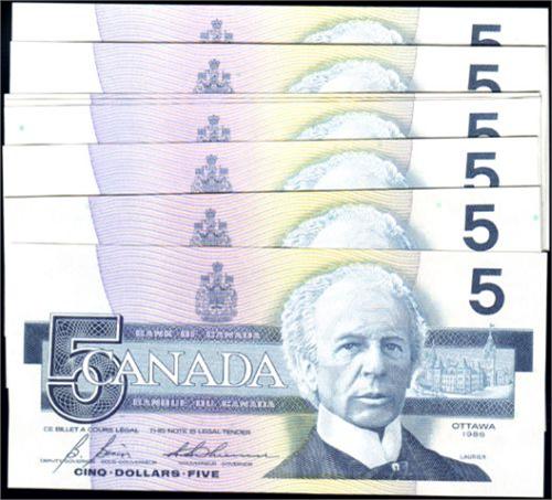 $5 1986 BC-56c Twelve notes, AU and Unc