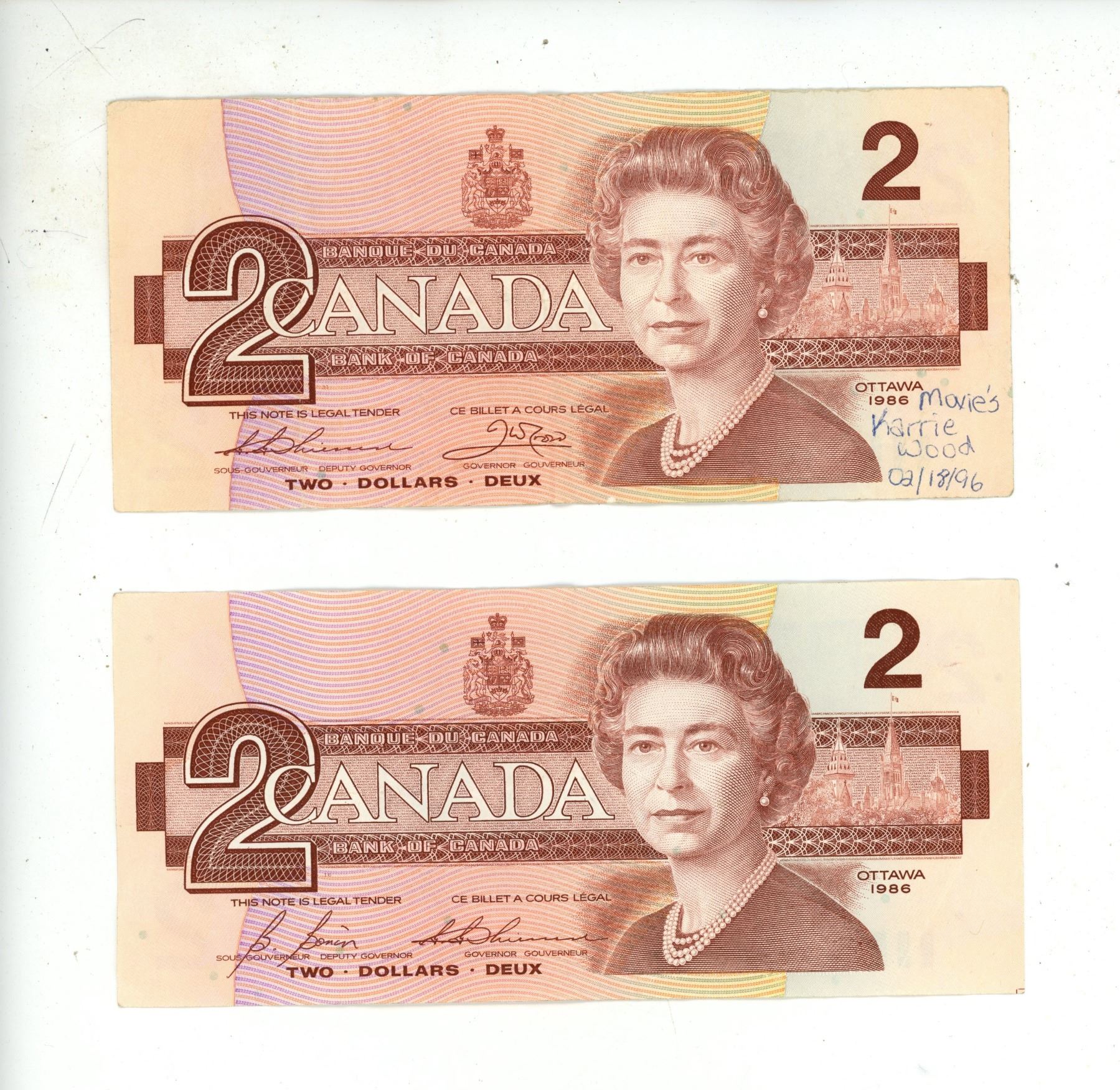 (5) 1986 Canada Two Dollars.