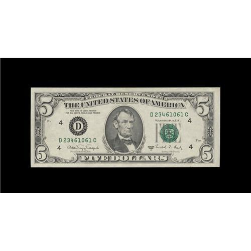 $5 1988A Federal Reserve Note. Blank Reverse Fr. 1980-D $5 1988A Federal Reserve Note. Very Choice C